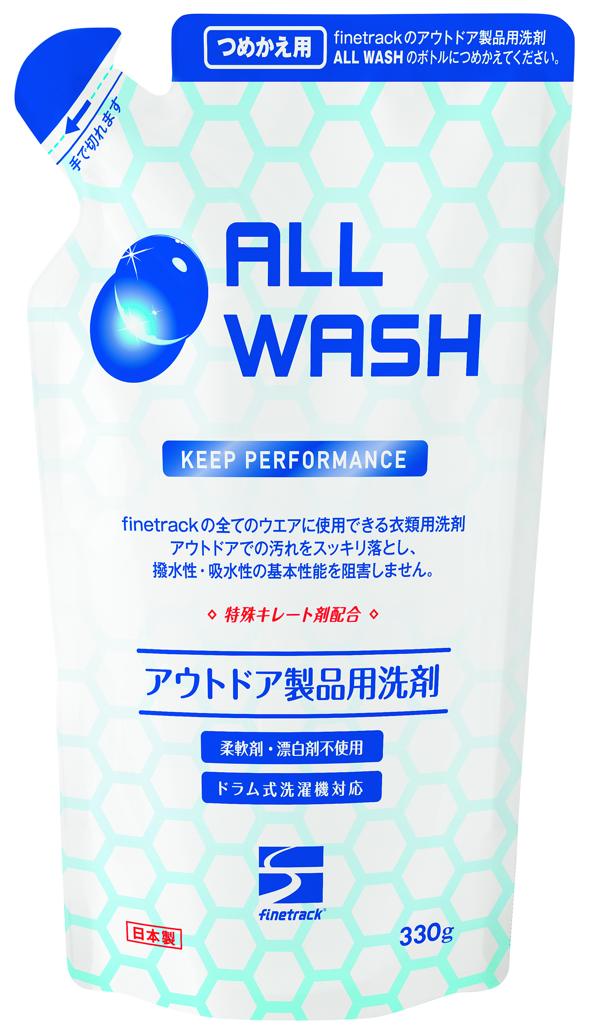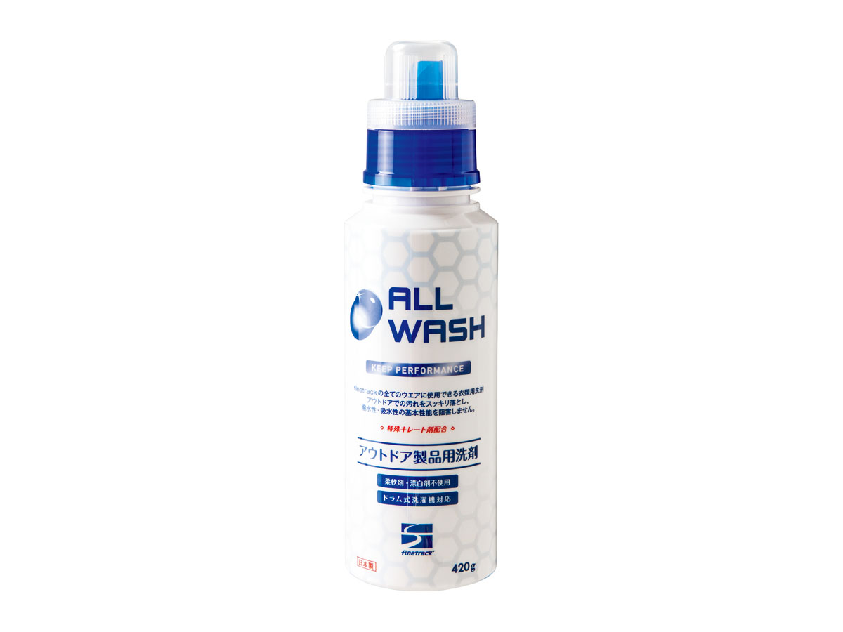 アウトドア好きにはうれしいオールウォッシュ(420g)は1350円。詰め替えパック(330g)は972円です。