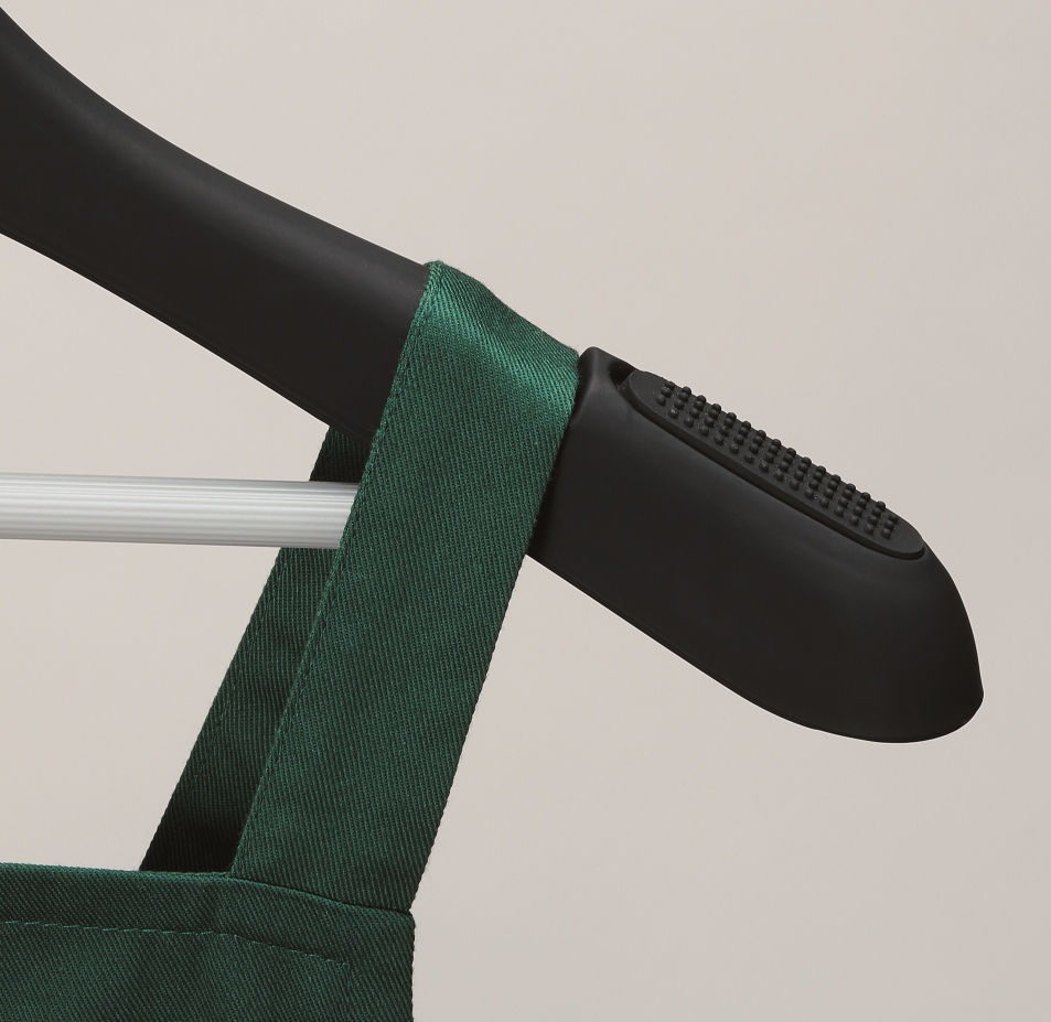 単純な商品だが、収納枚数も増やせる上、統一感もあって見た目もスッキリ。エプロンなどを吊り下げられるスリットも付いており、ハンガー自体の機能性もなかなかだ。