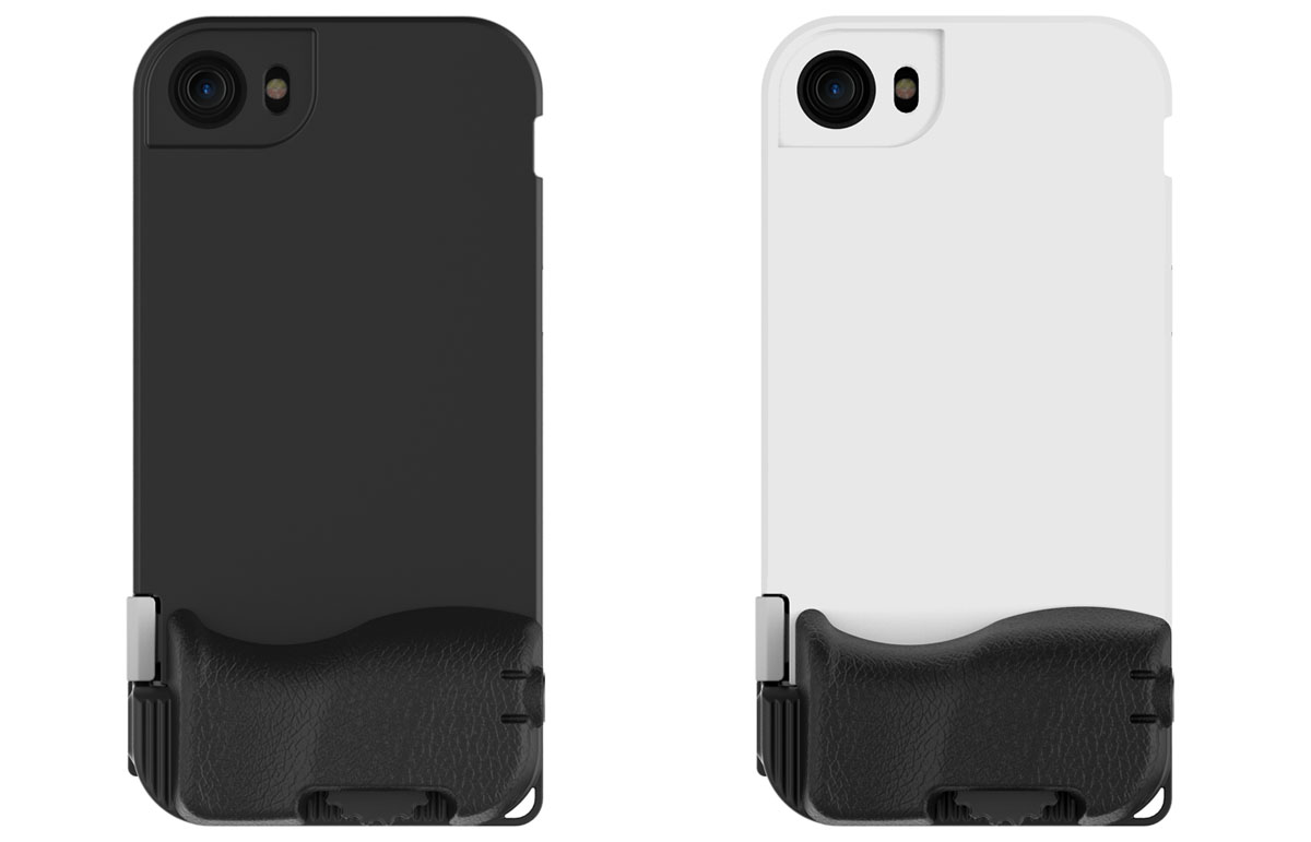 ケースに組み込まれたシャッターボタンは特許技術のメカニカルシャッター構造で「ボタンを押せばシャッターが切れる」仕様。デジカメのように直感的なスナップショットを撮影できます。付属のアドオン・グリップをケースに装着すれば、撮影時には一眼レフカメラのような安定性を得られます。