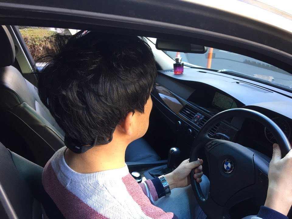 難しい作業は必要なく、本体のon/offスイッチを押した後、メガネをかけるように首の後ろにかけるだけで準備完了。重さはたった25gとメガネより軽いので、慣れれば装着感も忘れてしまう。