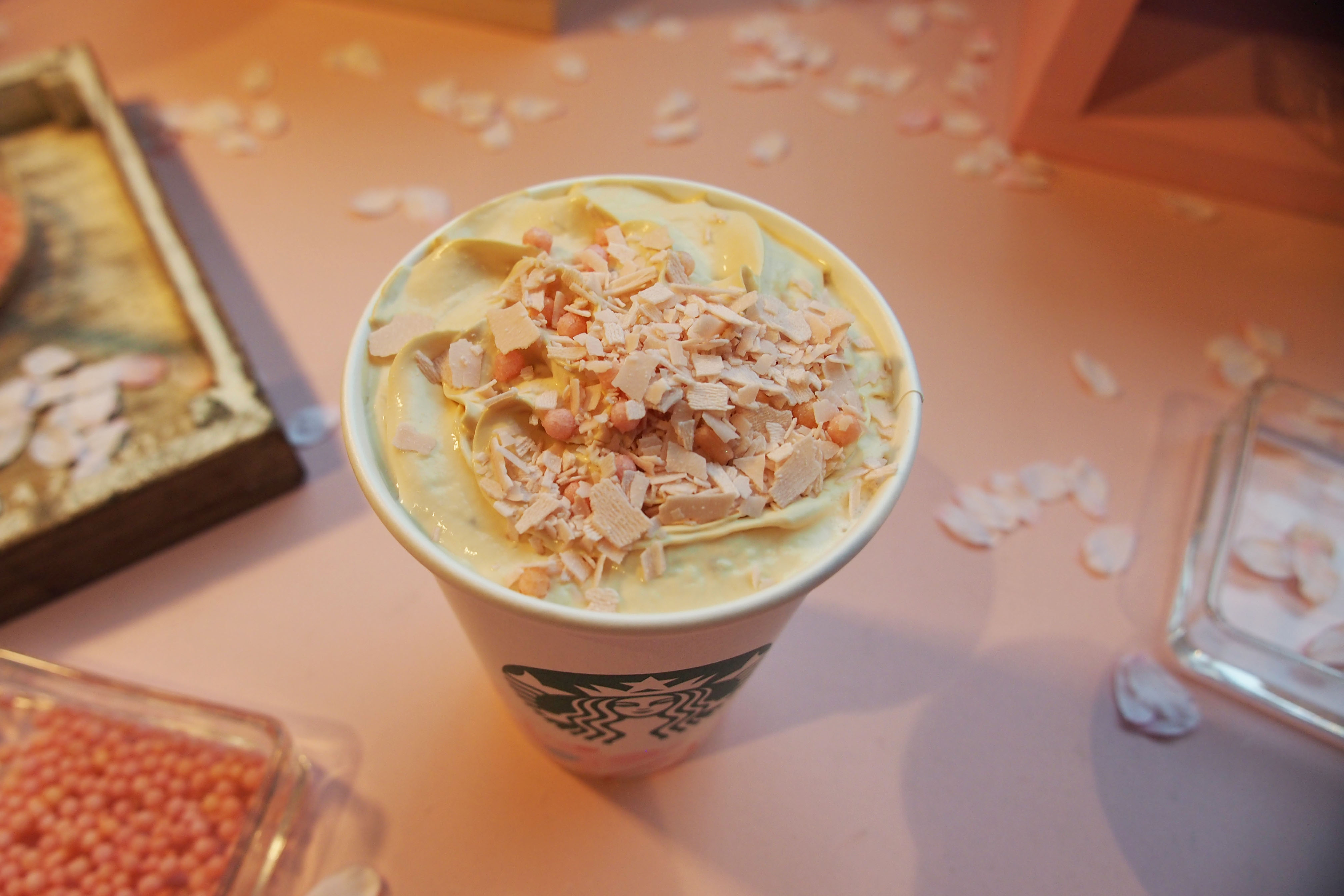 ▲「さくら ブロッサム クリーム フラペチーノ with クリスピースワール」