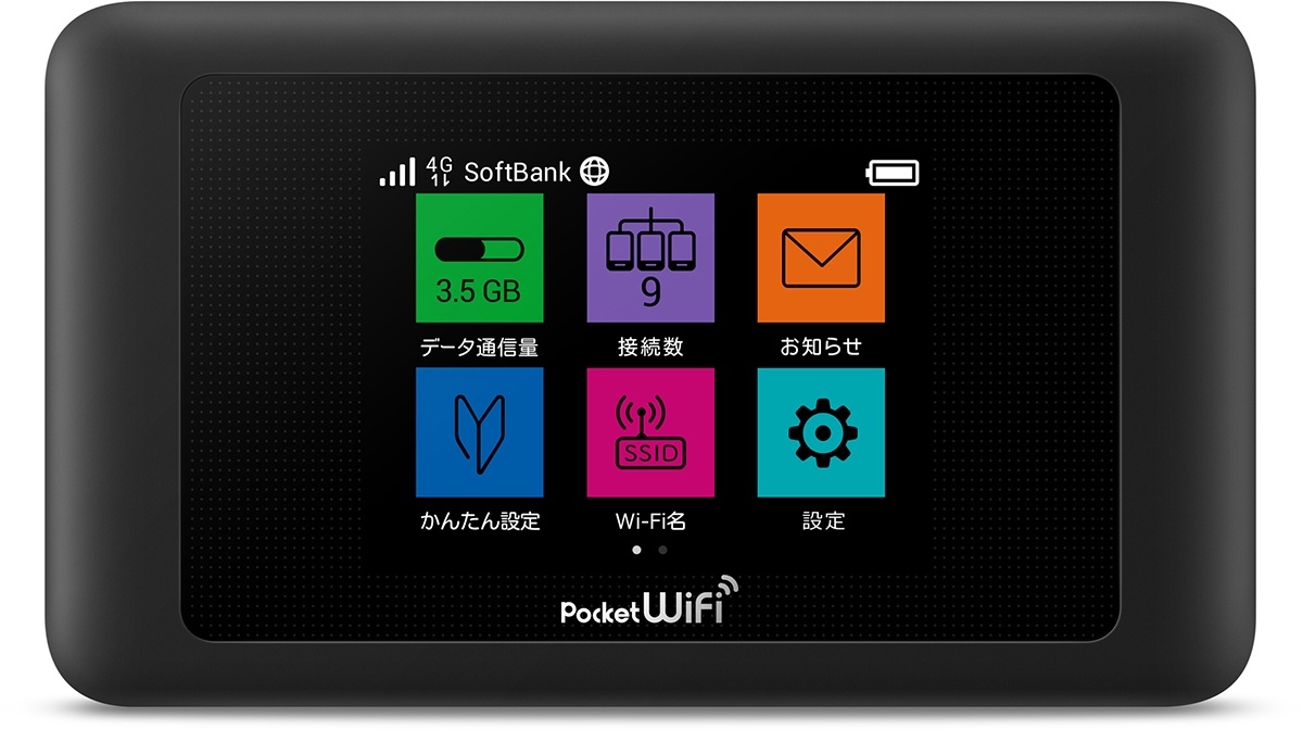 電源を入れてから約5秒で使えるという高速起動で、ストレスなくすぐにネット接続ができます。2400mAhのバッテリーを搭載。省電力性能も高く、連続通信時間は最大で約8.5時間(キャリアアグリゲーション非適用で省電力設定をONにしている場合)。