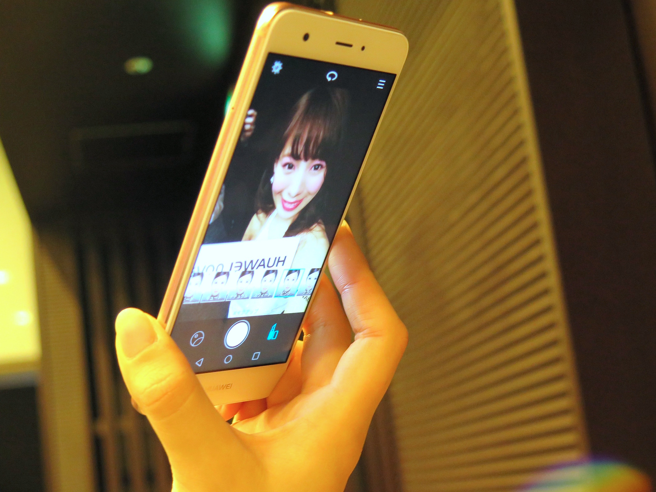 最大のアドバンテージはカメラ。背面の1200万画素カメラは、ライカの技術は用いられていないものの、カメラ性能が高く評価された「HUAWEI P9」と同じものを搭載。レンズの明るさやセンサーの面積を向上させ、薄暗い場所でも鮮明に撮影できるとのこと。800万画素のフロントカメラは、セルフィー機能を強化し、国際的なメイクアップアーティストの監修による「メイクアップモード」など、ユニークな独自機能も備えています。