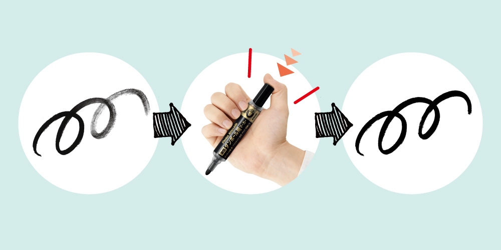 普通のマーカーですと、かすれ対策のために予備のマーカーを2、3本用意してから作業、なんてこともありますが、そんな必要もなくなりそうです。