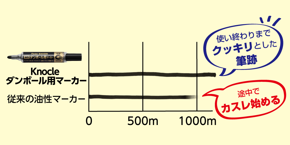 これに加え、色の濃い生インキが、通常のマーカーよりもたっぷり多めに入っており、濃くて読みやすい文字が、かすれずに、長く(たくさん)書けるようになっています。