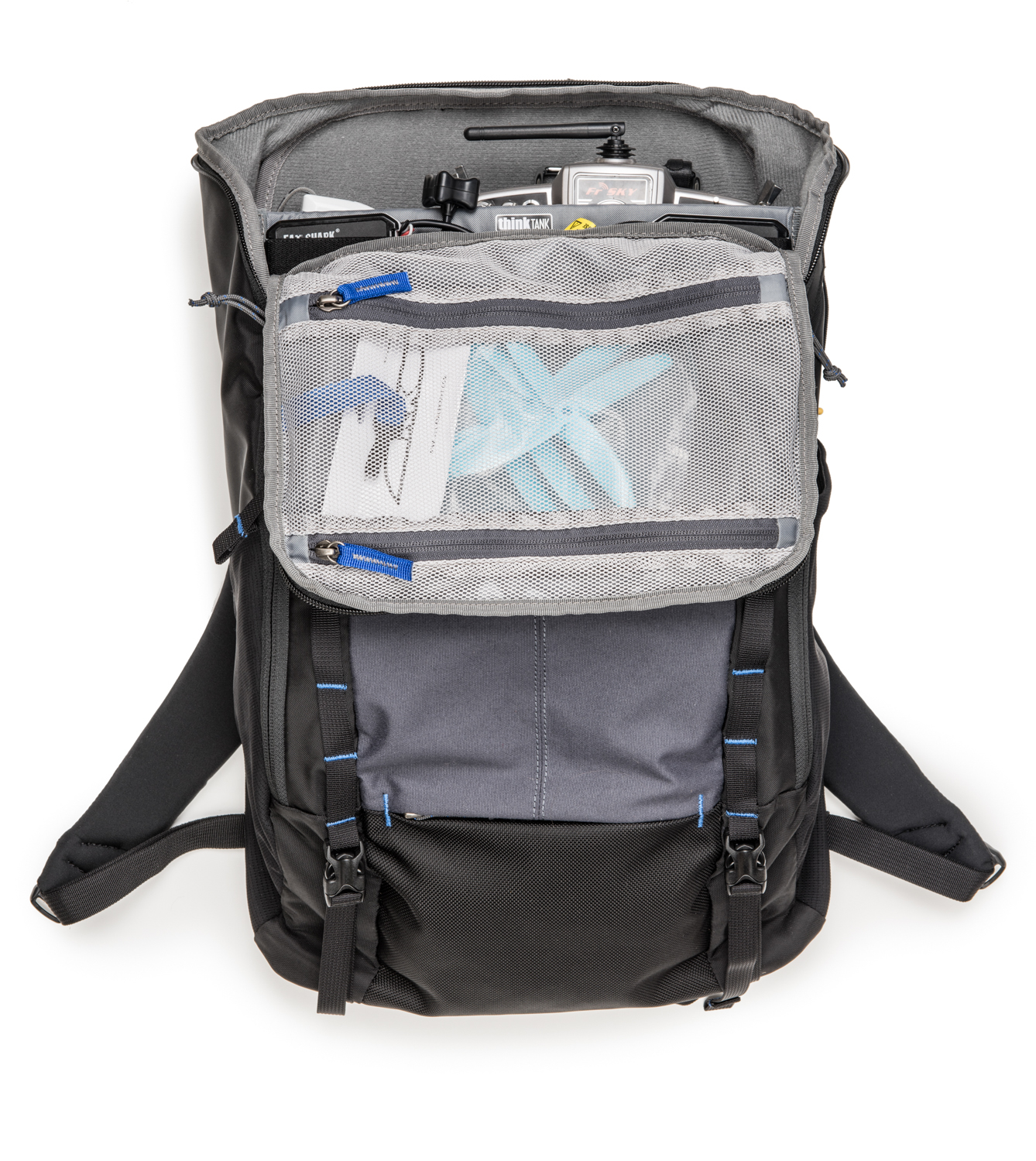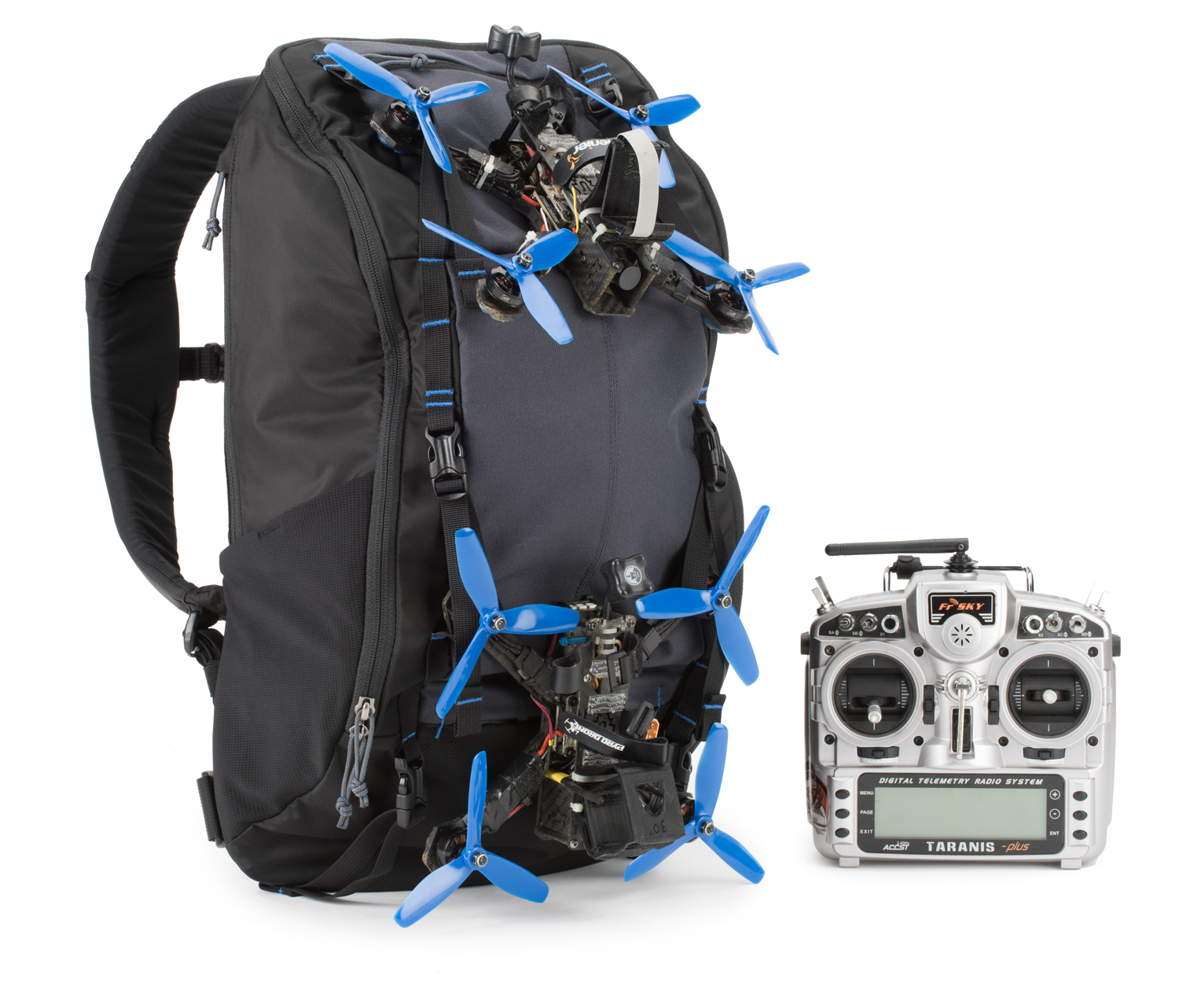 カメラバッグブランド、シンクタンクフォトが開発した「FPV セッションバックパック」は、FPVレースで必要な機材を効率良く収納できるように設計されています。外寸は31×50.8×16.5cm。バッグ自体の重量は1.1kg。