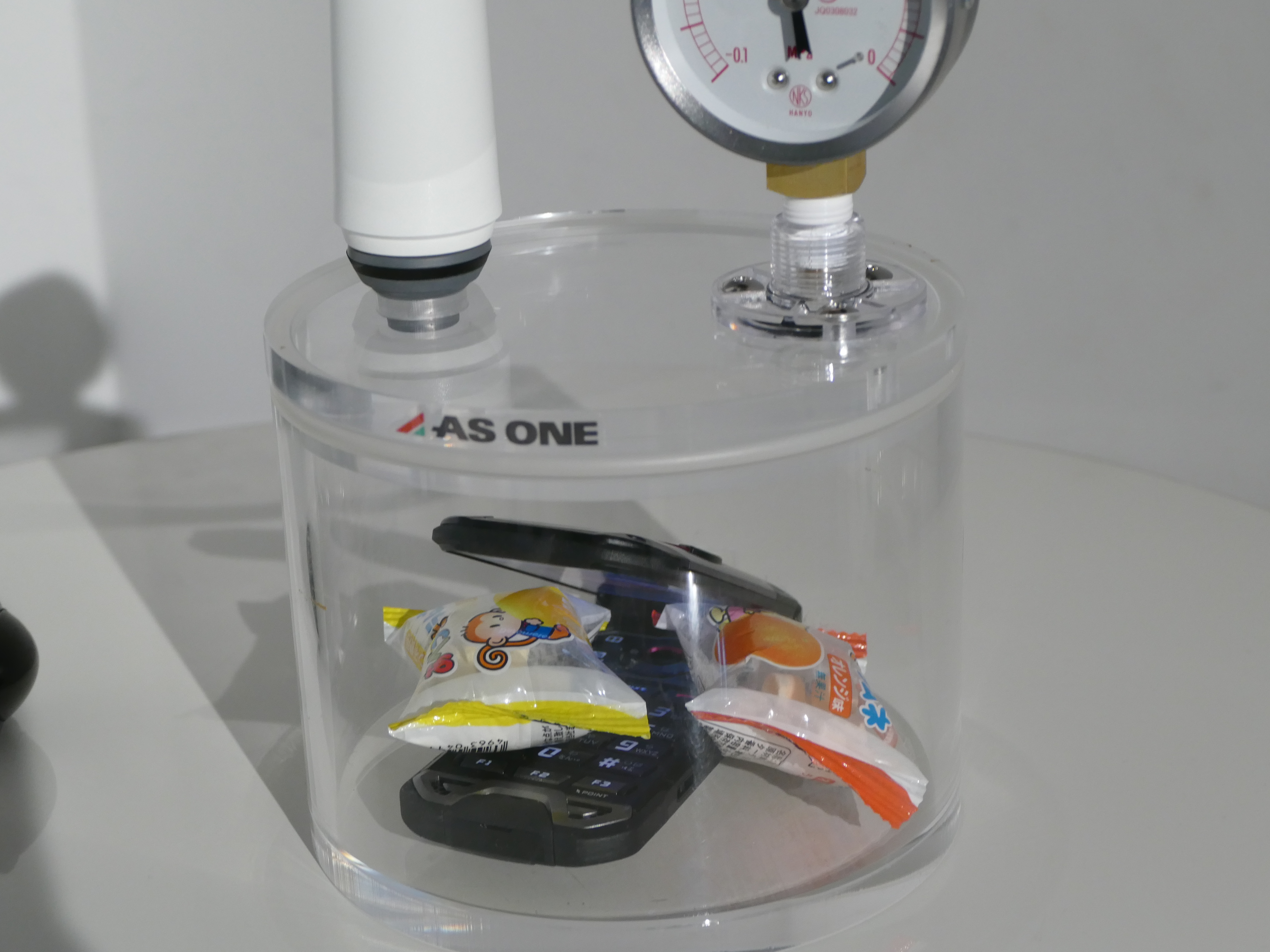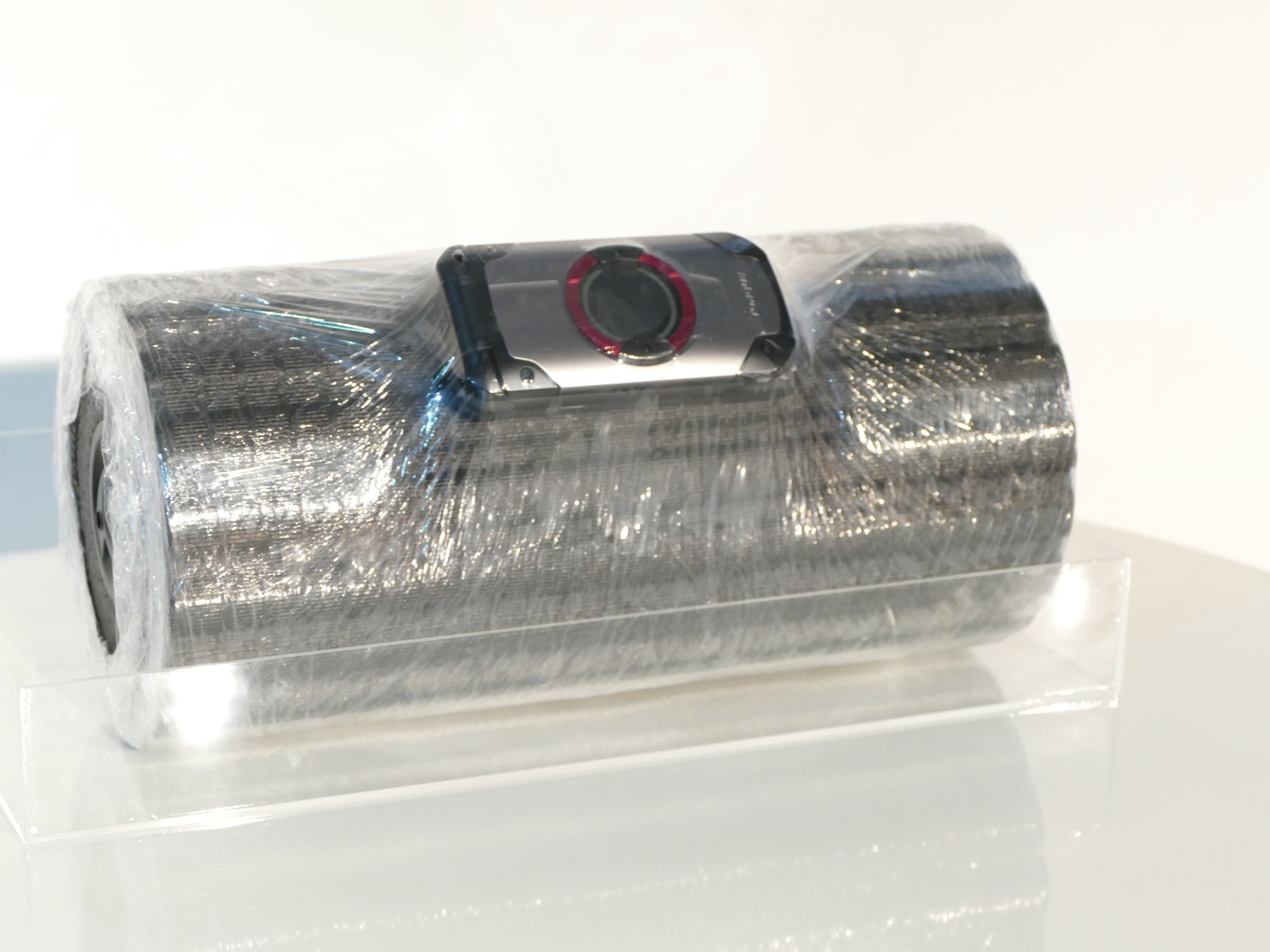 そして、注目は防水耐衝撃実験の展示。なんと、TORQUEさん、洗濯機に入れられてしまいました。