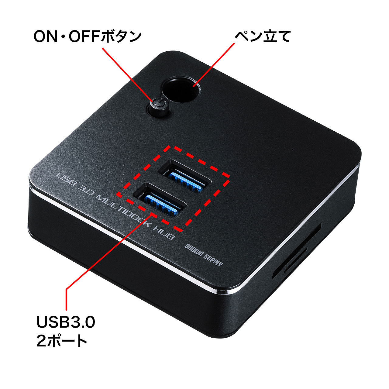 パソコン側のUSBポートから電源を受けるバスパワー方式なのでアダプターが不要で、しかも小型なので手軽に持ち運び可能。社内で会議室から会議室に渡り歩くことが多い人や、出張するときに便利に使えそうです。surface用ペンに役立つペン立てもついてますよ。