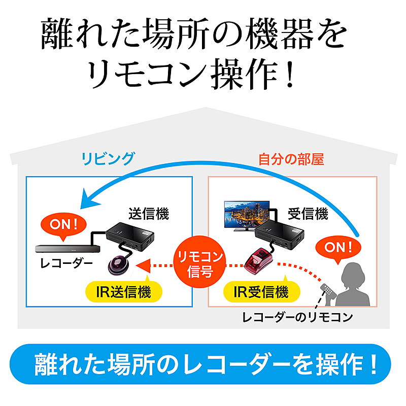 伝送可能距離は、同室内であれば最大50m! 壁などの障害物がある場合でも最大15m先まで信号を送れます。これだけあれば部屋をまたいで使用できますね。