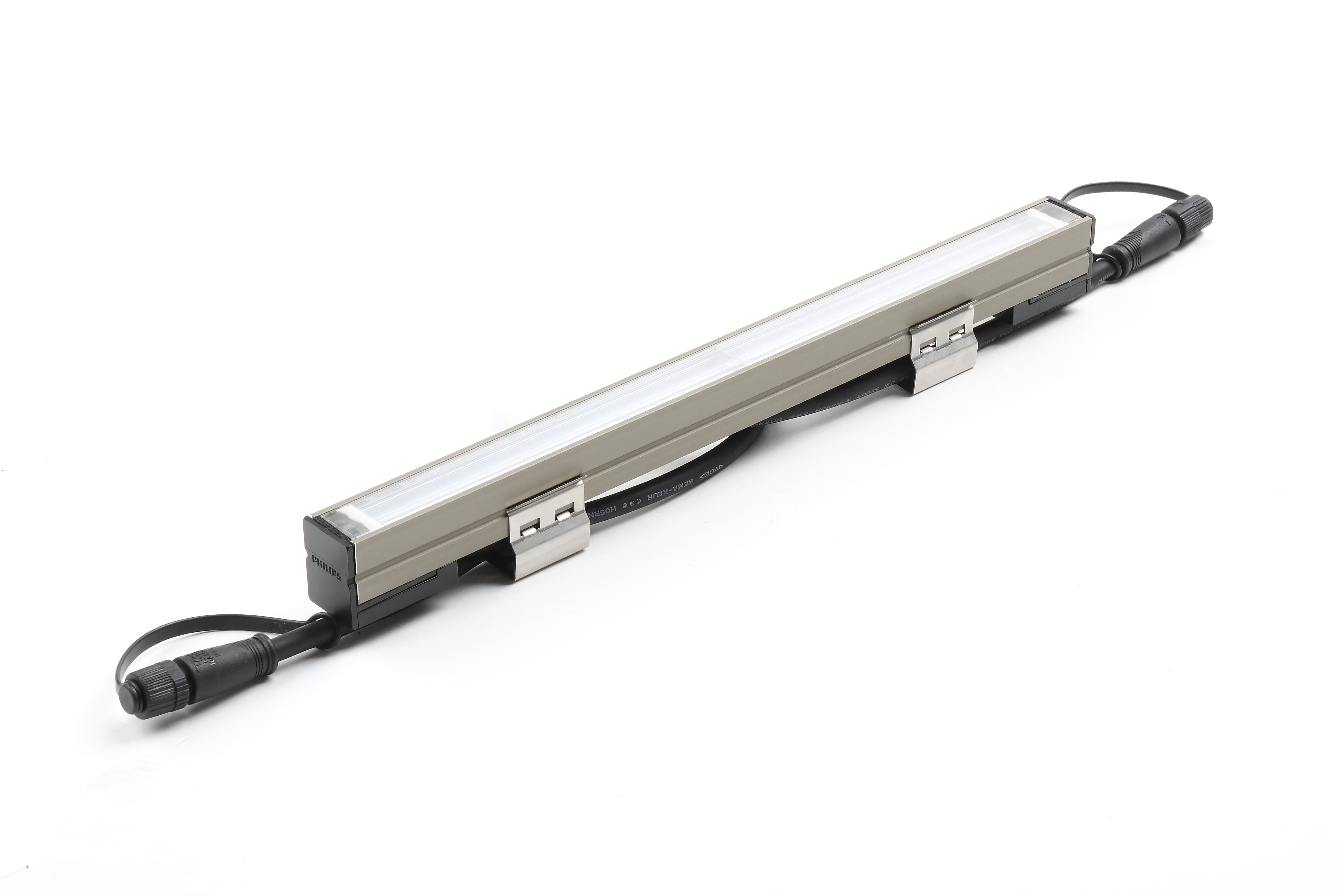 「UNIstrip Compact(ユニストリップ コンパクトシリーズ)」は建物の演出に適した屋外照明。長さ327mmと1211mmの2種類があります。50000時間もの長寿命で優れたランニングコスト。