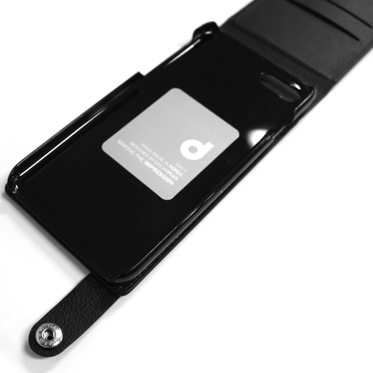 iPhone 7本体を納めるはめ枠部分は耐久性のあるポリカーボネート素材で作られており、衝撃からしっかりガード。留め具ボタンが付いているので、ケース前面部がパカパカ開くといったこともありません。