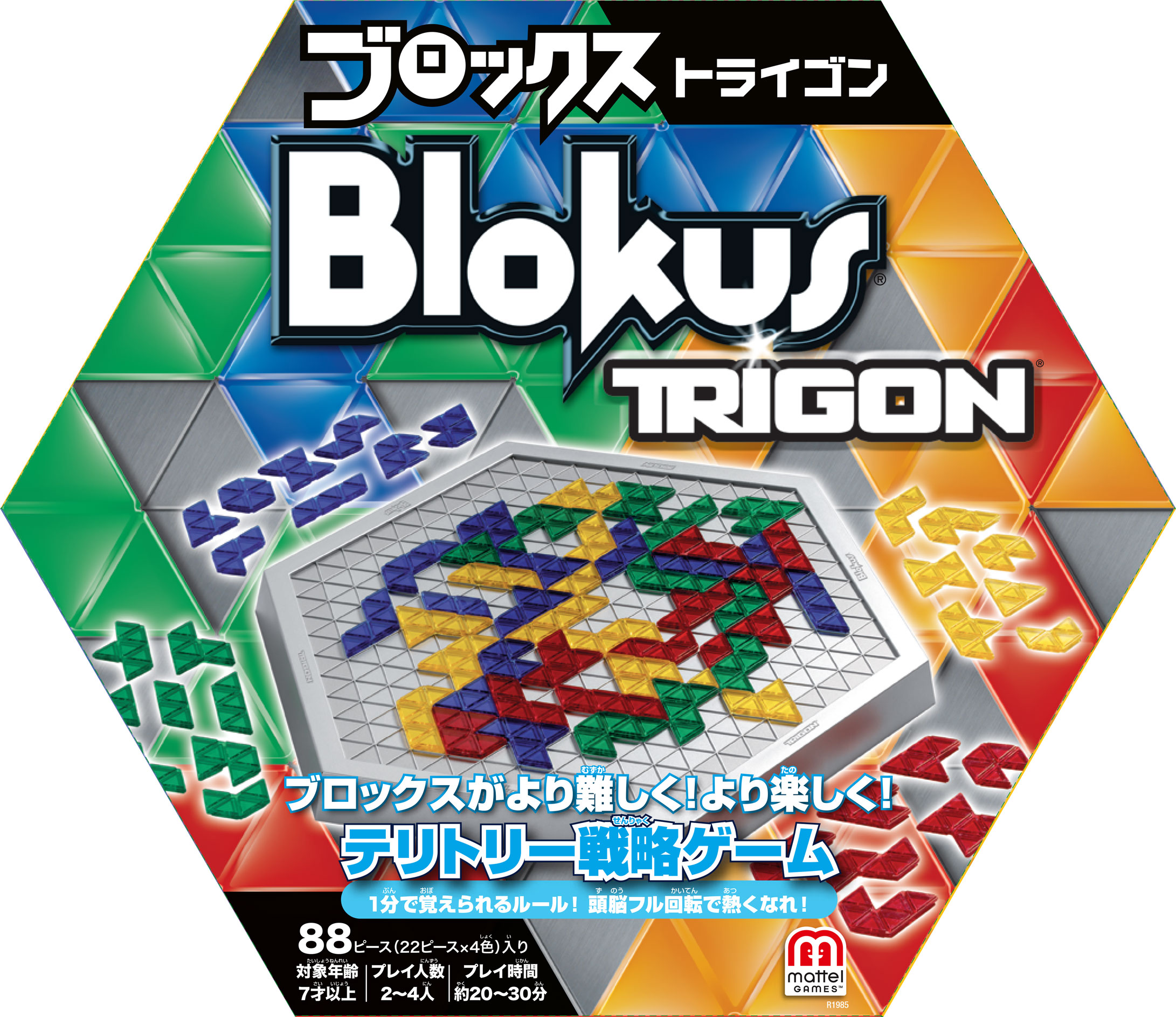 3月11日よりAmazonにて先行発売を開始した「ブロックス トライゴン」は、このブロックスのベーシックなルールはそのままに、ピースの形を正方形マスから三角形マスに、ボードも六角形に変更。楽しさも難しさもパワーアップされました。