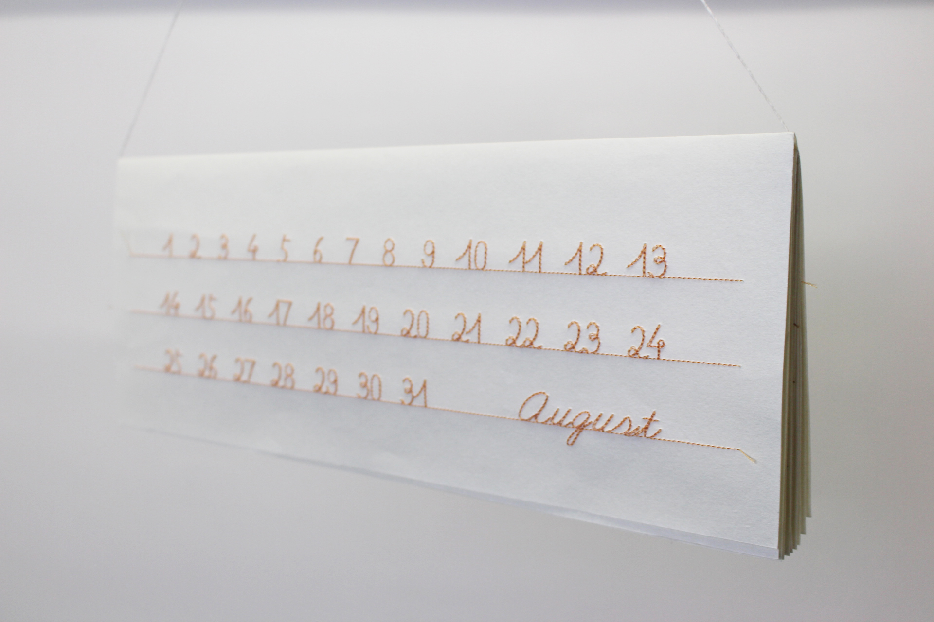 コクヨデザインアワード入賞作品からは、新たに3作品が製品化。こちらも個数限定で特別販売されます。表紙から内ページに至るまでいっさい印刷を用いず、紙の凸凹のみで表現した「エンボスノート」や、日付の数字が1本の糸で縫われた繊細な世界観のカレンダー「儚く、美しく」が発売予定。