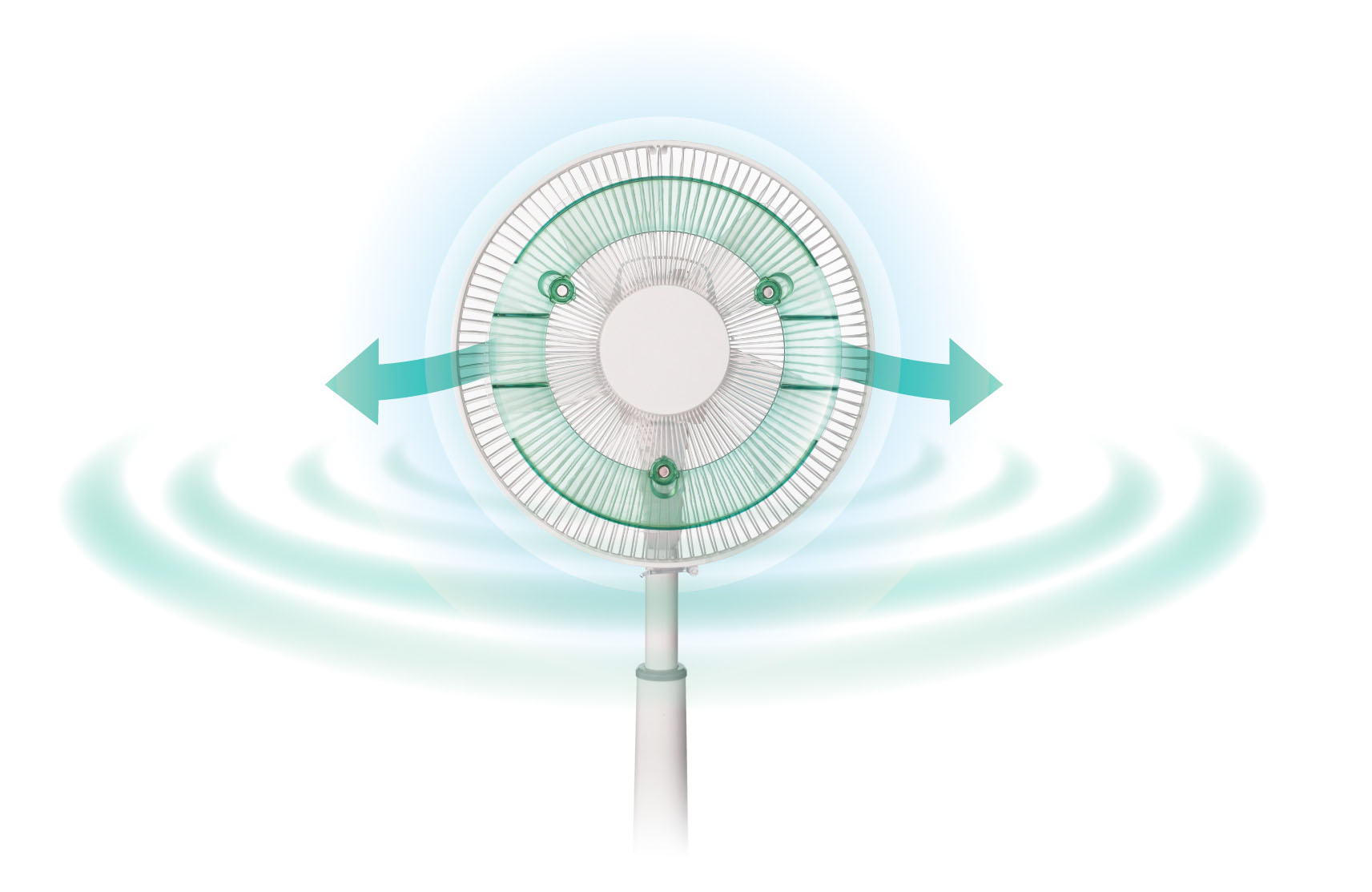 「快風!強マリーナ」は9枚の羽根が気流を整えることで風の直進性を強め、扇風機の送風力をアップさせます(弱風設定推奨)。サーキュレーターとしてエアコン使用時の空調効率向上や、室内干しの乾燥時間を短縮させるなど、幅広く使用できます。