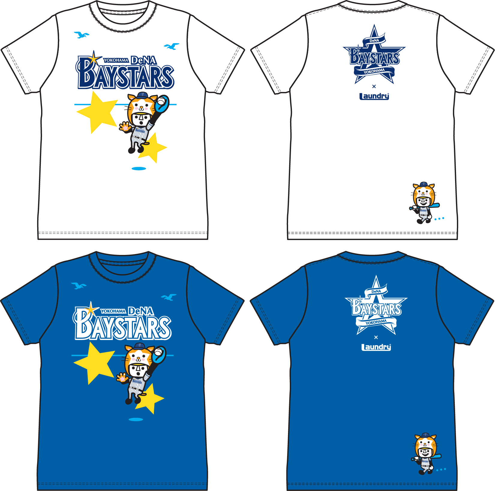 ▲横浜DeNAベイスターズ×Laundry コラボTシャツ(カラー:ホワイト/ブルー)