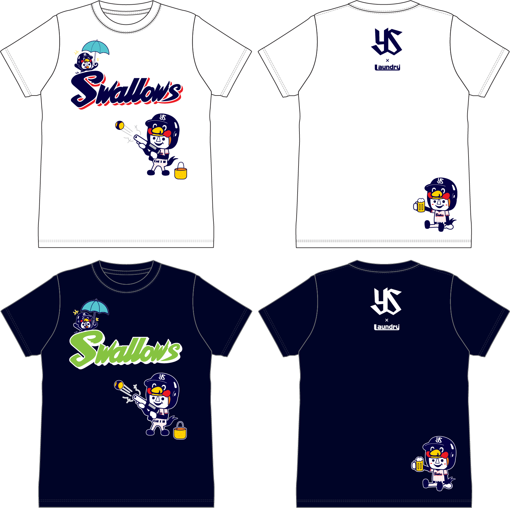▲東京ヤクルトスワローズ×Laundry コラボTシャツ(カラー:ホワイト/ブラック)