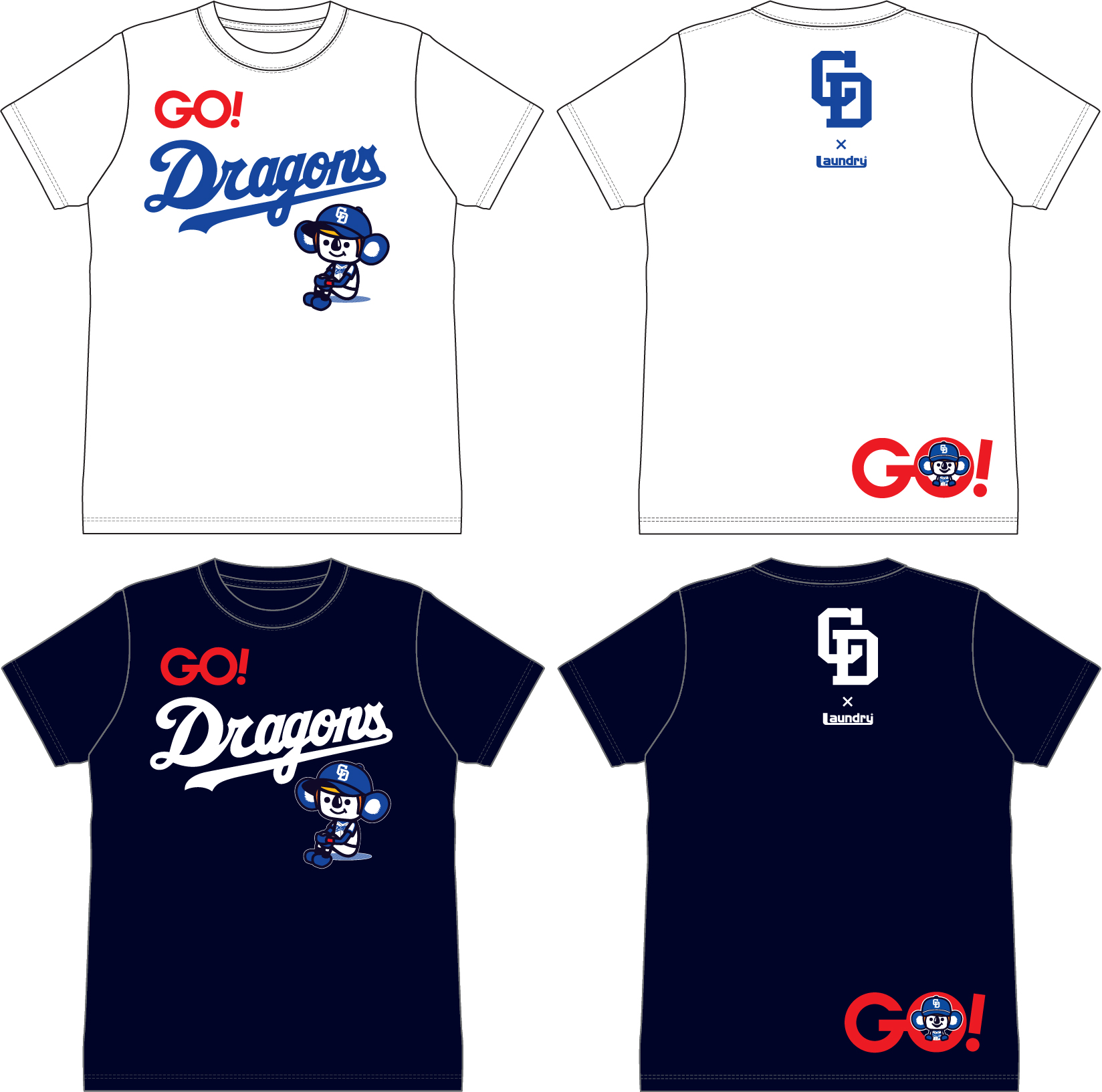 ▲中日ドラゴンズ×Laundry コラボTシャツ(カラー:ホワイト/ネイビー)
