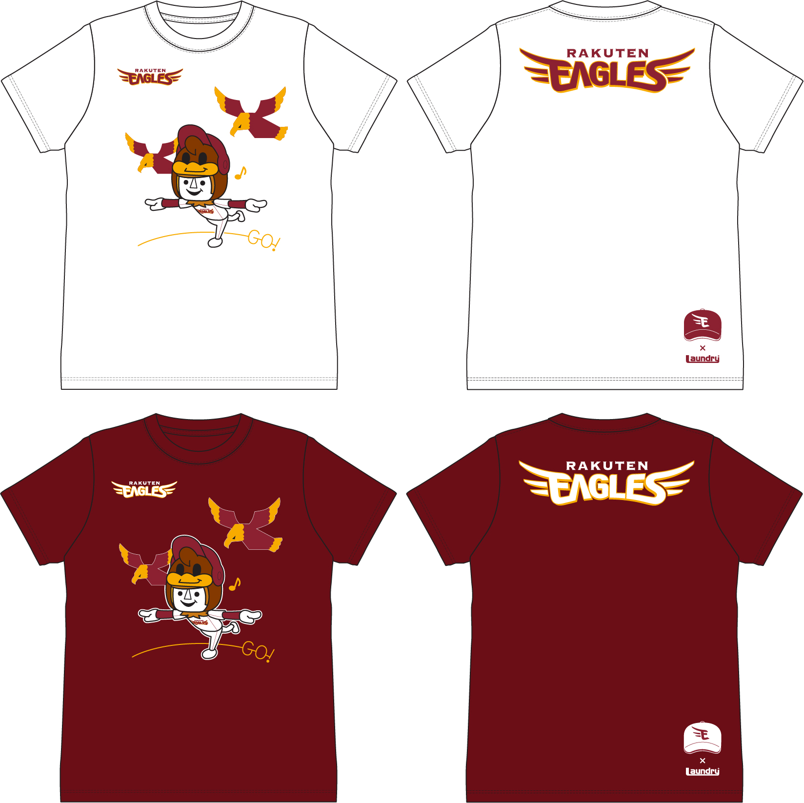 ▲東北楽天ゴールデンイーグルス×Laundry コラボTシャツ(カラー:ホワイト/ボルドー)