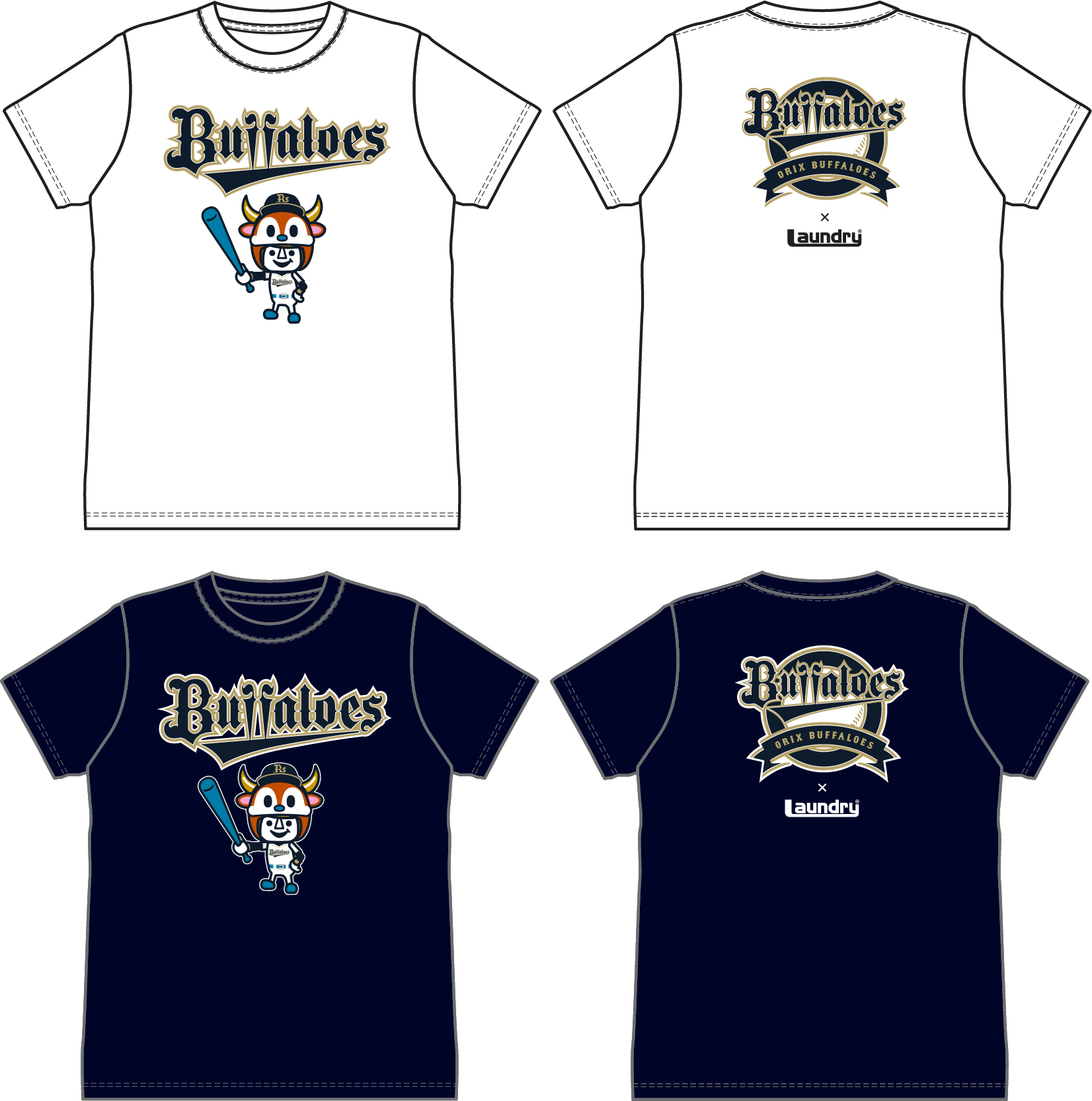 ▲オリックス・バファローズ×Laundry コラボTシャツ(カラー:ホワイト/ネイビー)