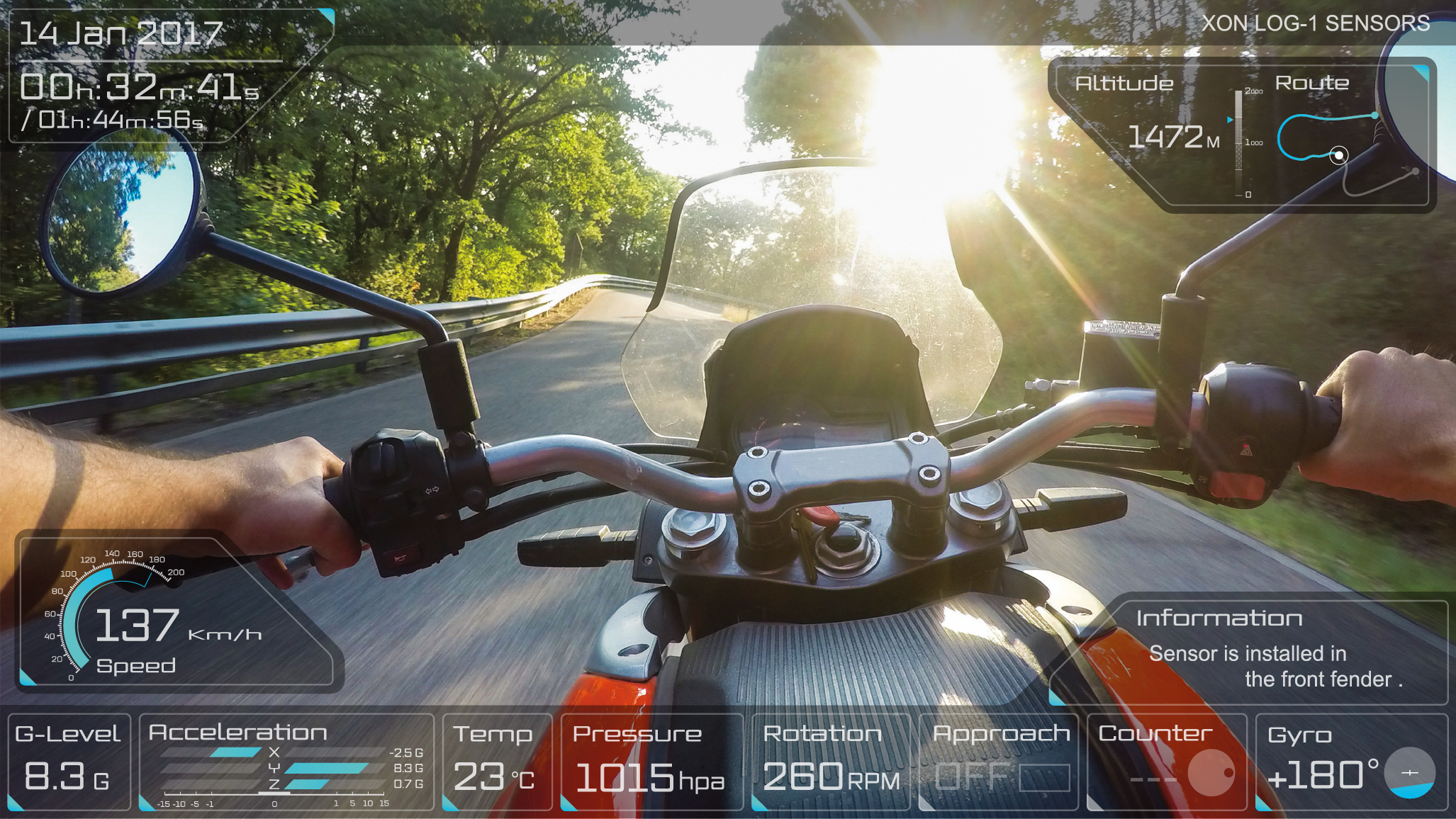 こうして取得されたデータは、撮影した動画の上にオーバーレイで表示させることができます。製品デザインもさることながら、画面に表示されるデータのグラフィックは、近未来感のあるデザインで、なんだか自分の映像が、映画かゲームにでもなったような気分に。