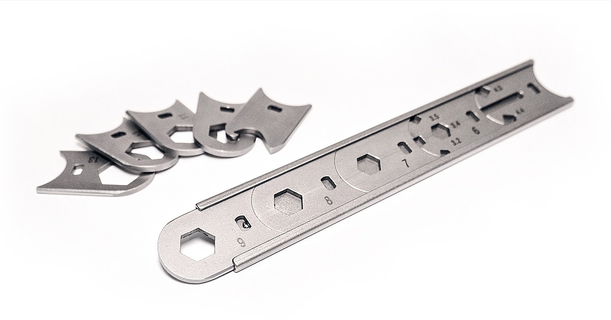 「WRENCHit(レンチット)」はこれまでにない発想で生まれたユニークなレンチ。スリーブと呼ばれる本体に、さまざまなサイズ・形状のボルト・ナットに対応した5つのレンチを収納。