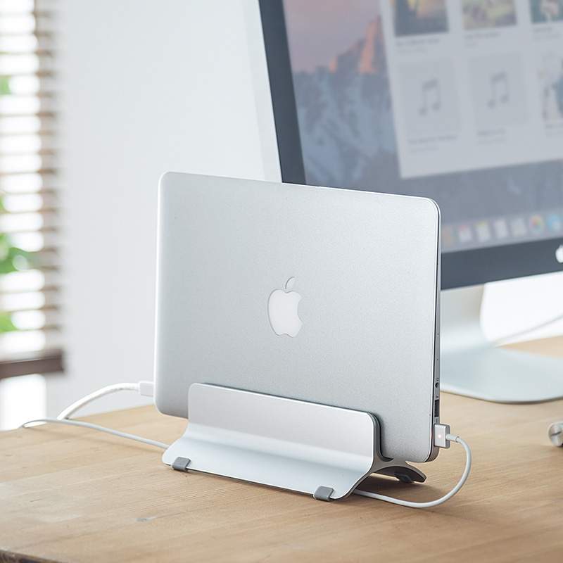 外出時にはコンパクトなノートパソコンを持ち歩き、オフィスや家に戻ってからはそれを大きな外部ディスプレイにつないで作業する。そんなスタイルの人々から、「そうそう、こういうのを待ってた!」という声が聞こえそうなのが、アルミ製ノートパソコンスタンド「200-STN025S」。MacBookなどのノートパソコンを立て置きでき、限られたデスクスペースを有効活用できるアイテムです。