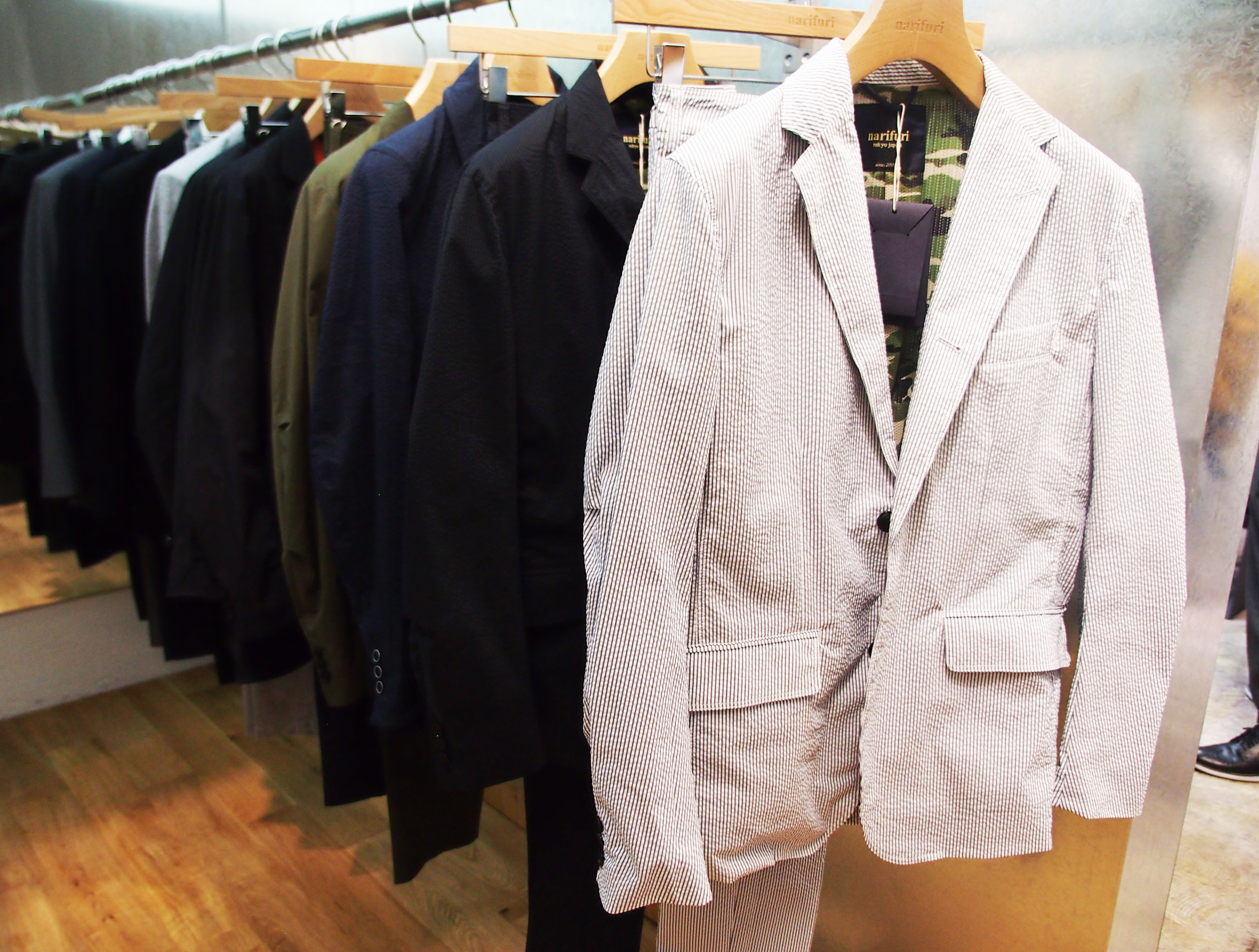 内階段を上がった2階は、スポーツ、カジュアル、スーツライン "Extreme Commute" を展開する「narifuri」の商品がディスプレイされています。