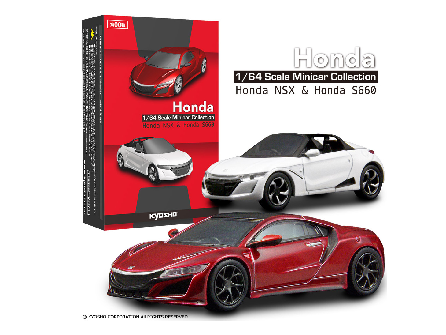 「KYOSHO 1/64 ホンダNSX&S660ミニカーコレクション」は、往年のホンダファンがその登場を待ち望んでいたといっても過言ではない、ミッドシップエンジン・リアドライブを採用した「NSX」と「S660」をディテールまで再現しています。