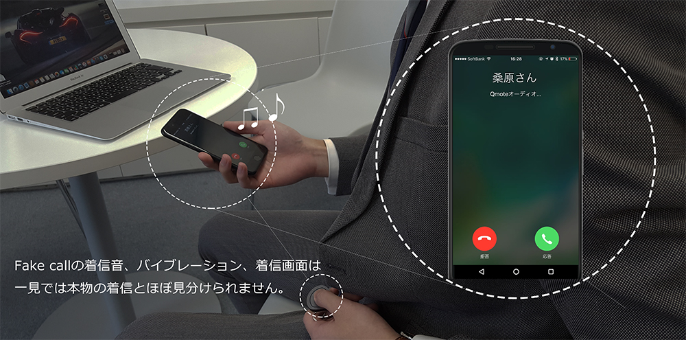 そして、「フェイクコール」なんていう機能も!事前登録した名前から電話をかけてくれるんですって。会議が長引き中座したいなという時など、これは案外使えそうですよね。