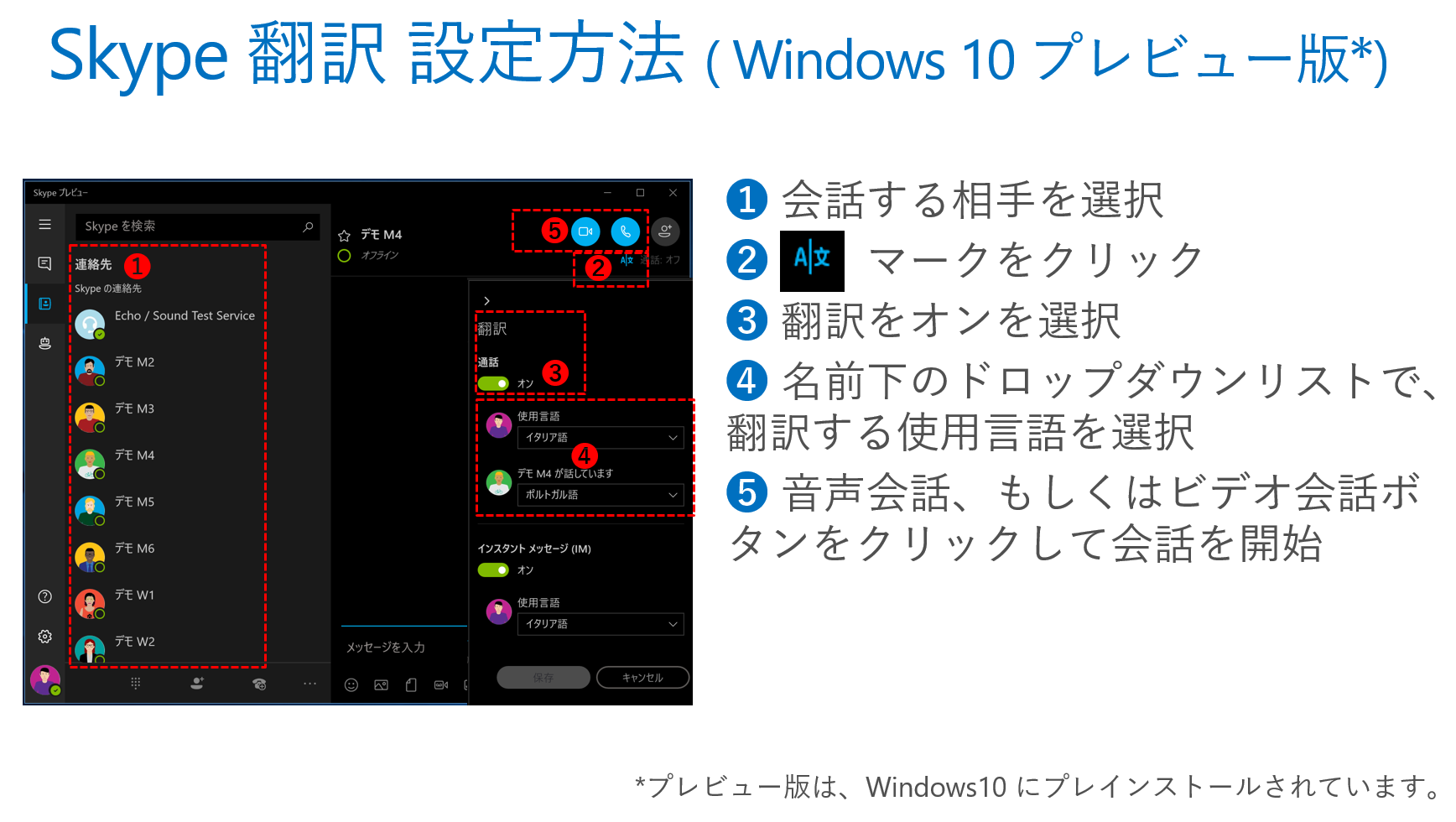 ちなみに、Skype 翻訳には、最新のAI(人工知能)技術が用いられています。学習機能も備えているため、使えば使うほど翻訳精度が向上することが期待できるとのこと。