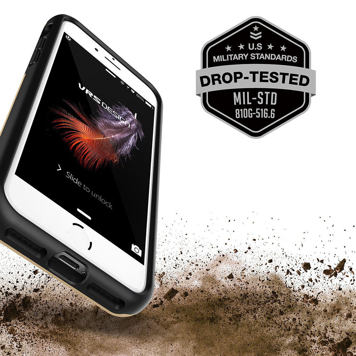 ケース本体はPC(ポリカーボネイト)×TPU(熱可塑性ポリウレタン)の二層構造。ケースの正面はiPhone 7よりもやや高めに設計されているため、落下時にスクリーンへの直接的な衝撃を防ぎます。