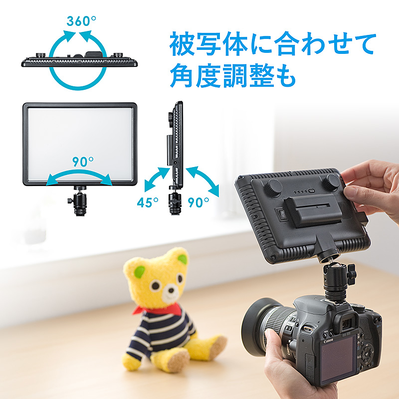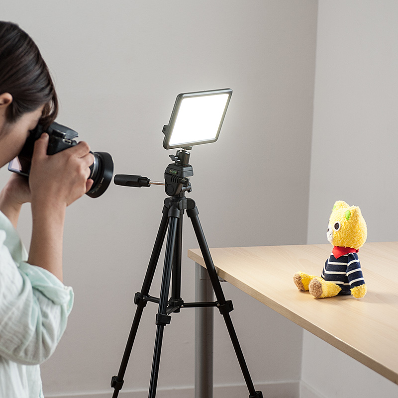 被写体を均一に常時点灯し、明るさと色温度を調整できる2種類のカメラ用LEDライト「200-DGCA002_003」は、寒色系・暖色系の高輝度LEDをそれぞれ搭載したカメラ用LEDライト。パネル型で無数のLEDを搭載し被写体を明るく均一に照らします。