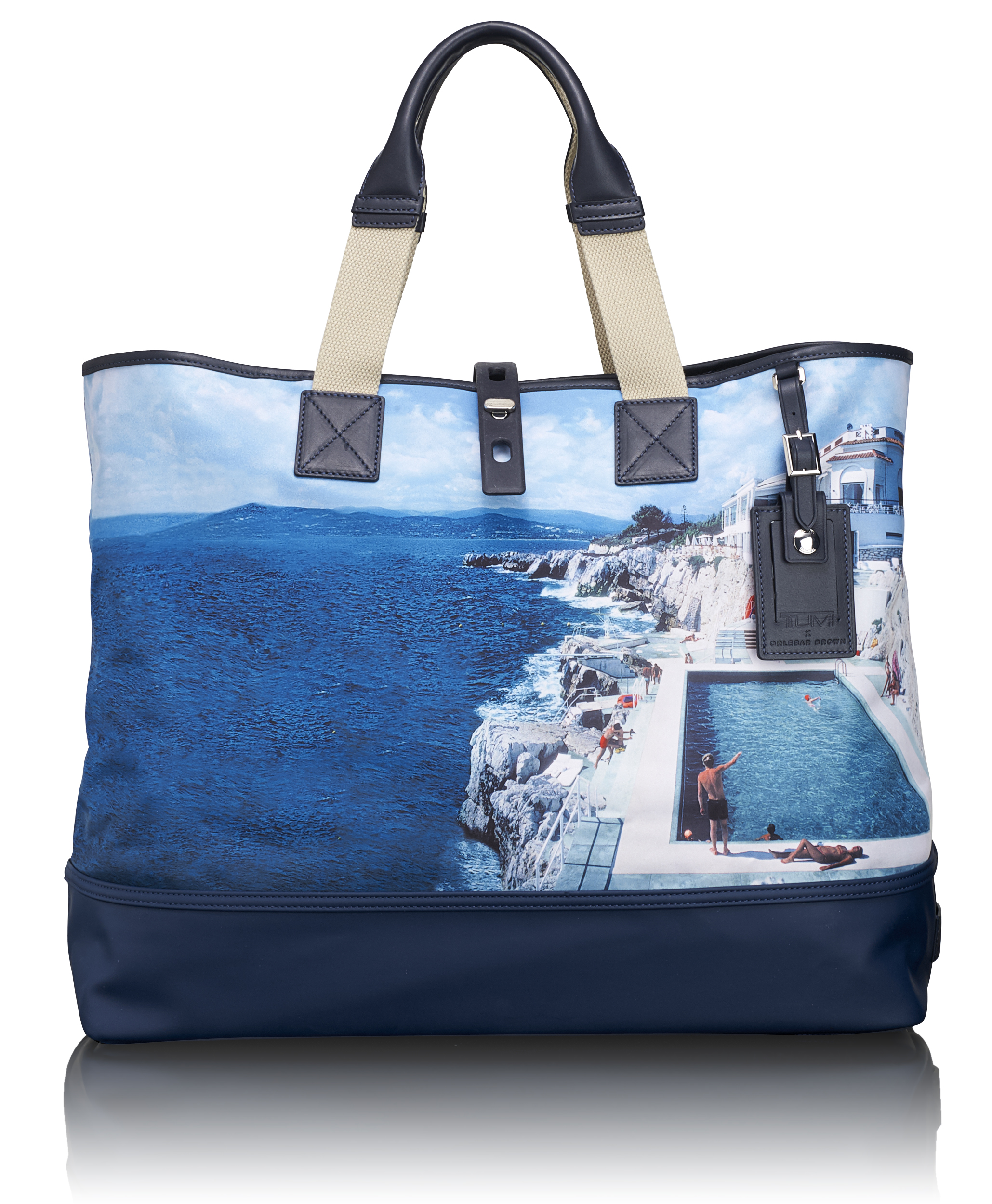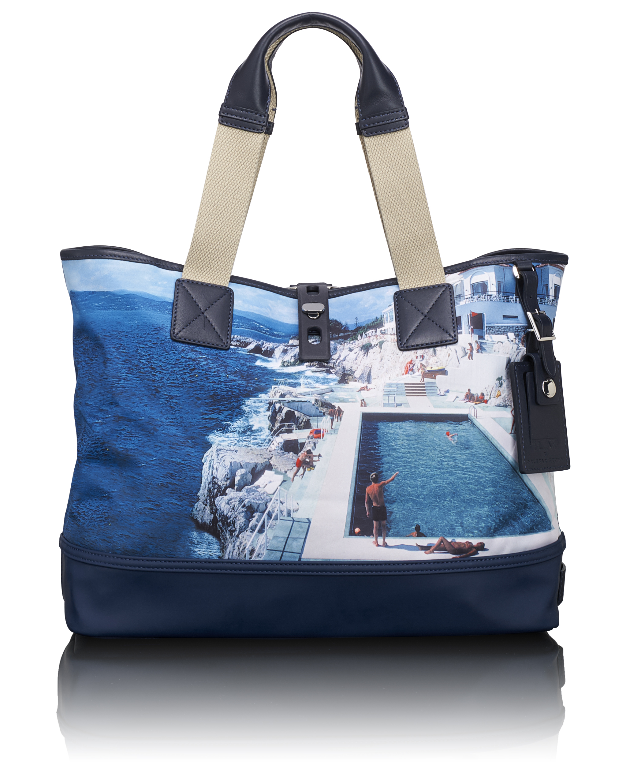 カラーはネイビーとナチュラルの2色と、オールバー・ブラウンの特徴ともいえる美しい写真を配したプリントデザイン1種の3パターン。ネイビーとナチュラルはコットンリネン、プールプリントはポリエステル素材です。トゥミとオールバー・ブラウン、それぞれのデザイン性を融合させたトートバッグはタウンユースにも。