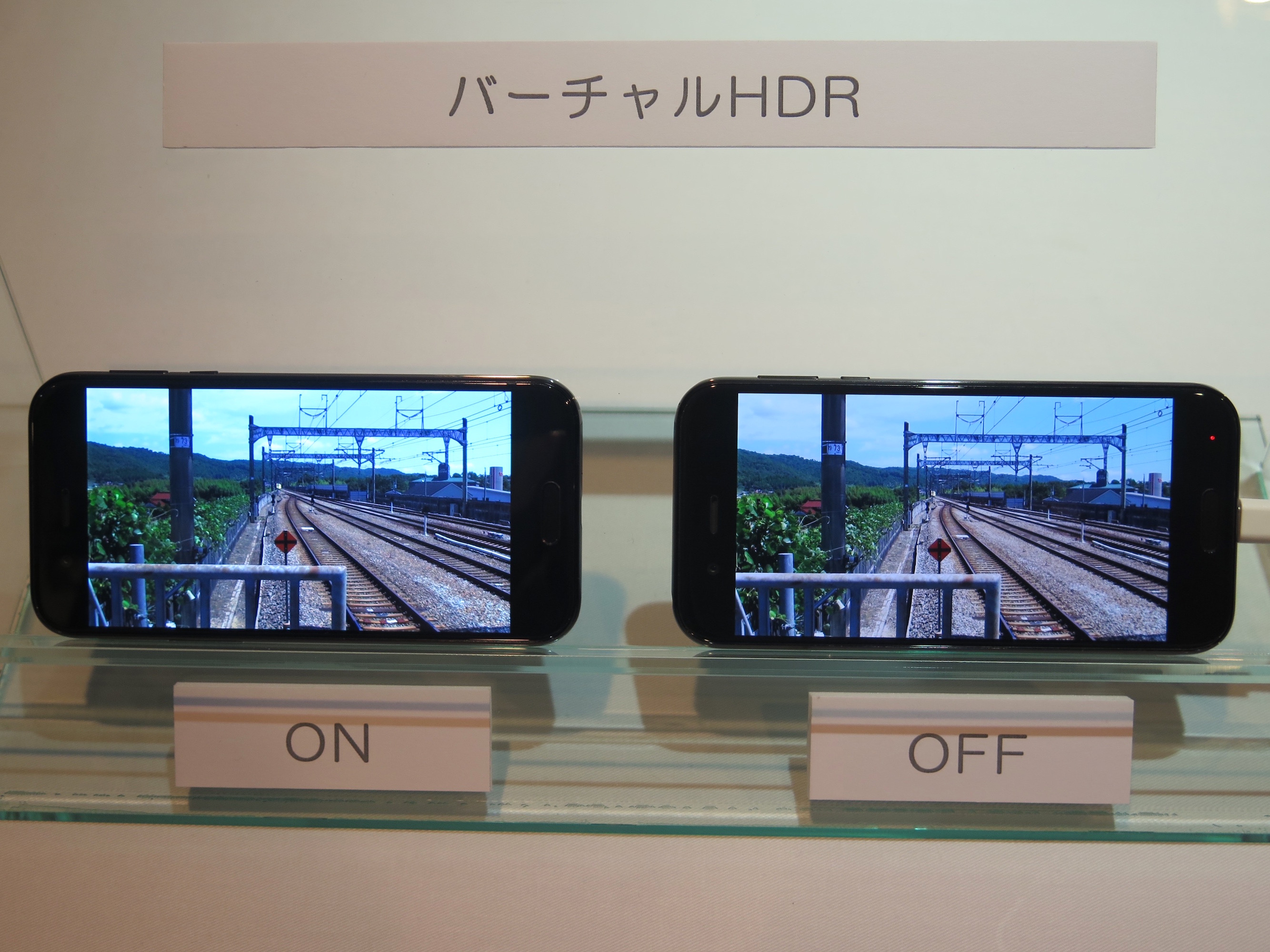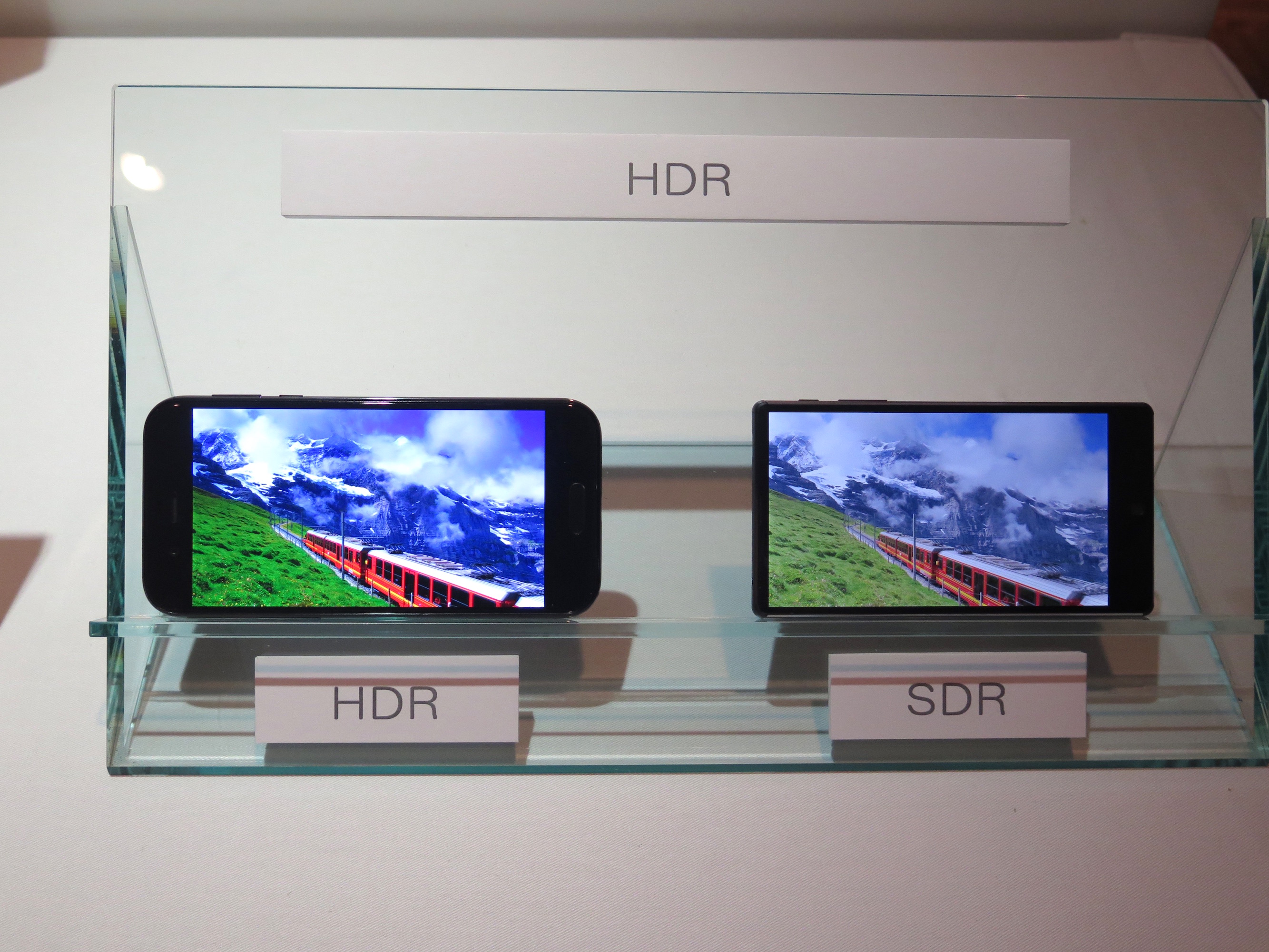 ▲左がAQUOS R。HDR対応により、従来よりも広範囲の輝度と色域が表示可能になり、映像の奥行き感が向上