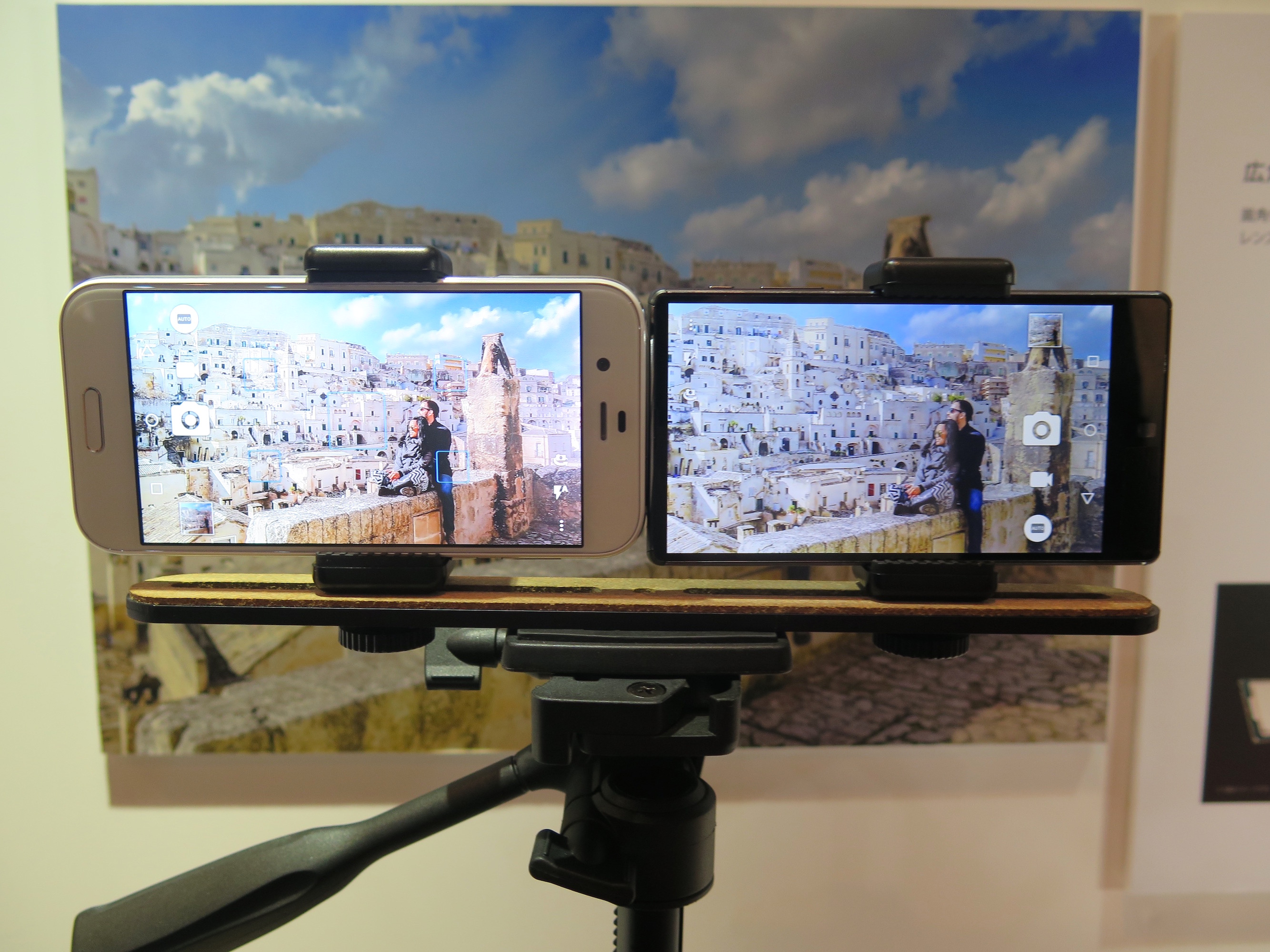 ▲左がAQUOS R。広角レンズの採用により、従来よりも広い範囲を写せるようになった