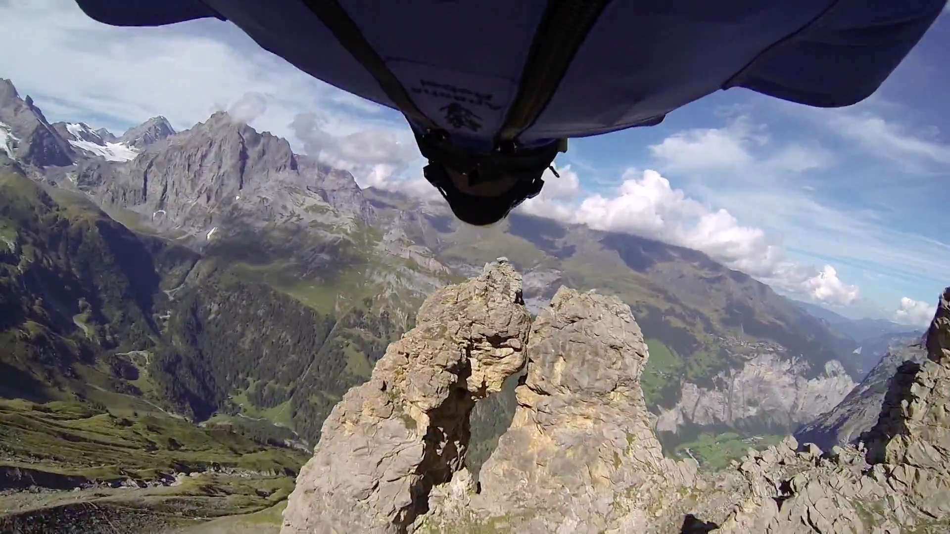 今回の動画では、ベースジャンプで有名なスイスの谷を時速126マイルのスピードで飛ぶ様子が記録されている。ぜひ見てほしいのは岩と岩の間、たった2mをすり抜ける瞬間! 映像が臨場感を持って迫り、思わず身がすくむ!