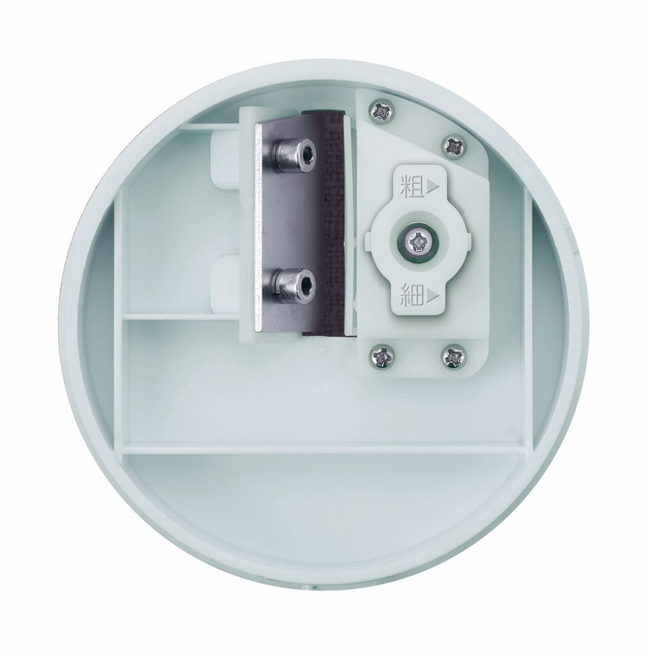 しかも、一般的な電動かき氷器と同じぐらいの手軽さ。好みの氷の細かさを調整レバーで設定後、 氷を入れて本体上スイッチを押さえるだけ。刃の高さ調整もワンタッチで簡単です。
