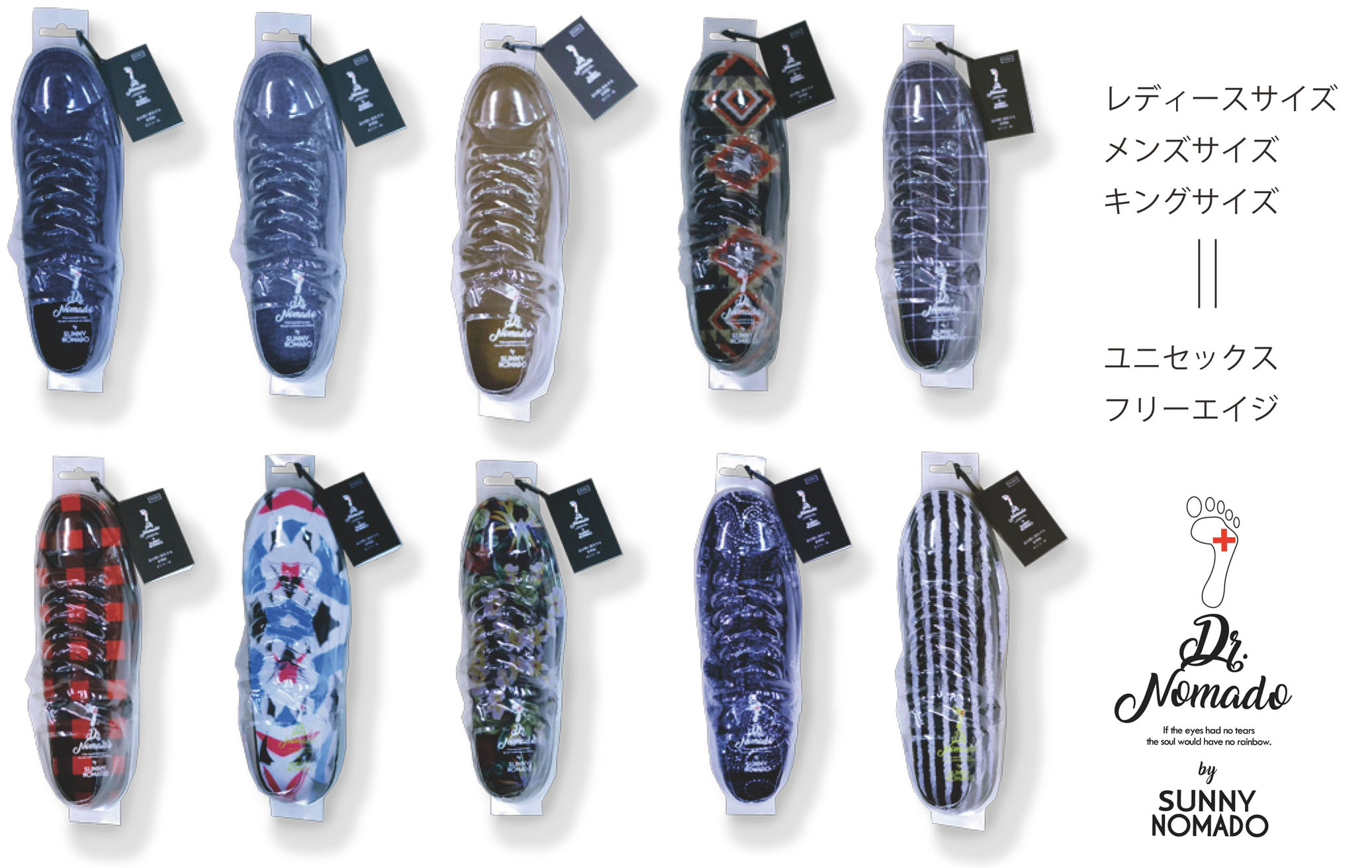 中敷きのデザインも、ストライプやチェック、トロピカル柄など多彩で、気に入ったものが見つかりそう。靴をかたどったクリアなケースもオシャレなので、プレゼントにも良さそうです。サイズはLADY’S(23.0㎝~24.5㎝)、MEN’S(25.0㎝~26.5㎝)、KING(27.0㎝~28.0㎝)で、それぞれ5832円。