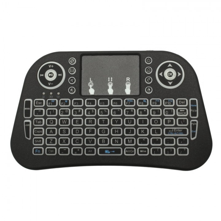 本体は96×162mmで厚さ20mm、重さ120g弱と、ゲームのコントローラーよりちょっと大きいかなというサイズ感。両手で持ち、操作は左右の親指で行ないます。デスク上でのパソコンで使うこともできそうですが、入力操作も周囲との人間関係もかなりギクシャクしそうで、おすすめはやっぱりAndroid搭載メディアプレーヤーでの使用です。