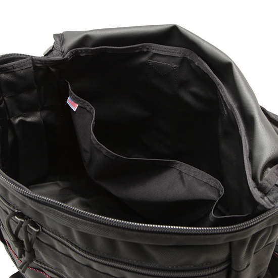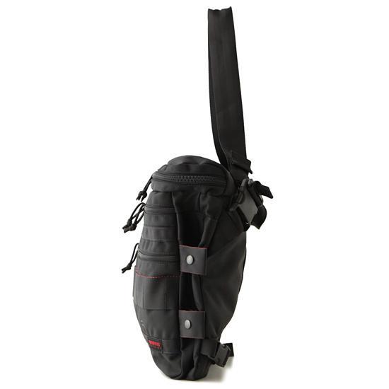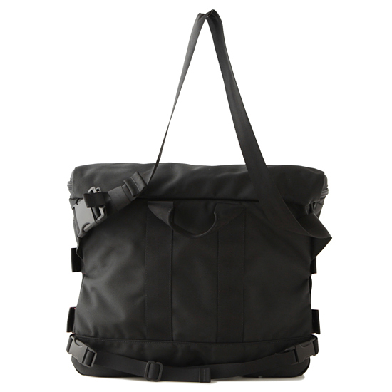 メッセンジャーバッグ「NEO EXPAND SHOULDER」(4万5360円)は、メッセンジャーと聞いてイメージするデザインとは異なり、正方形に近い四角い形が特徴で、さらに底部のスナップボタンとサイドのアジャスターでマチ幅を増やせるので、収納量を調整することも可能だ。自転車に乗ってもズレにくいよう、ホールドストラップが付いている。ブラック、ミッドナイトの2色。