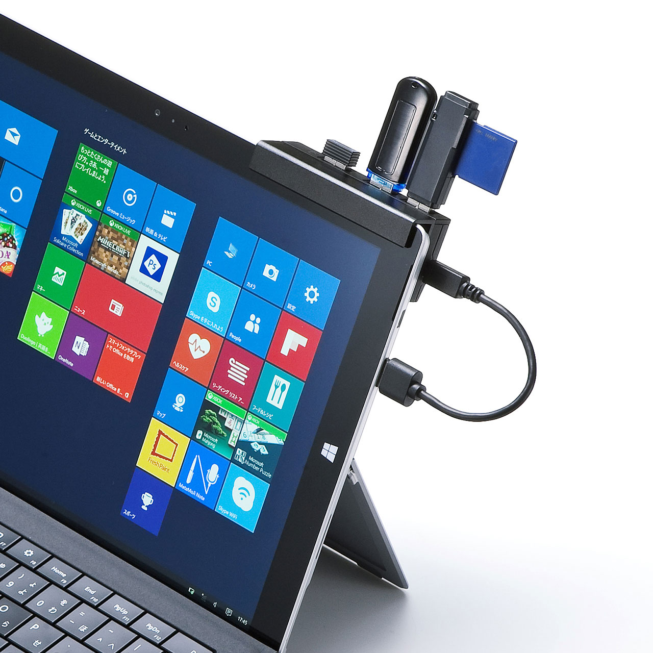 これさえあれば、USBメモリなどの外部ストレージや、キーボードやタブレットなどの入力デバイスの利用も自由自在。もう「あ、USBポートなかったんだ…」と遠い目をすることはありません!
