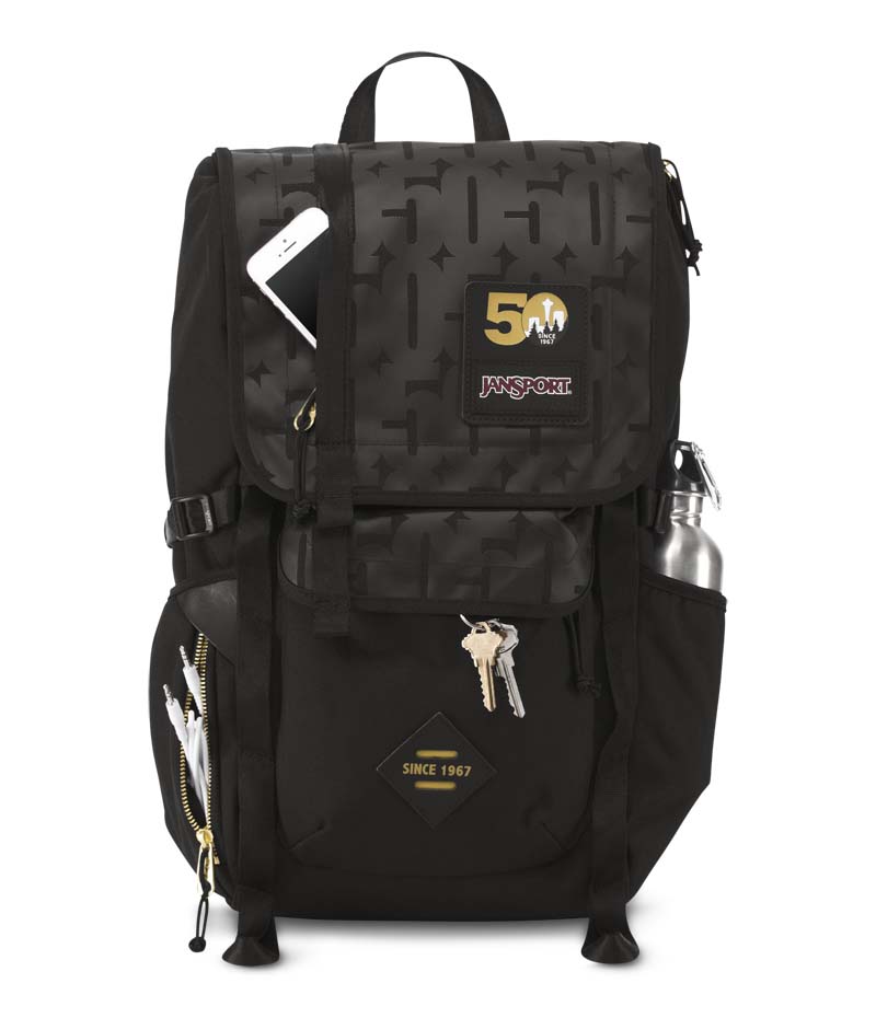 1967年、アメリカ生まれの老舗バッグブランド「JanSport」。マークを見て「あ、むかし部活で使っていた」という人もいるかもしれませんね。50周年の記念モデルはツヤ感が印象的なブラックのバックパック。まるで漆をまとったかのような生地なんですが、実用面とタフネスも健在。ビジネスからアウトドアまで活躍してくれます。