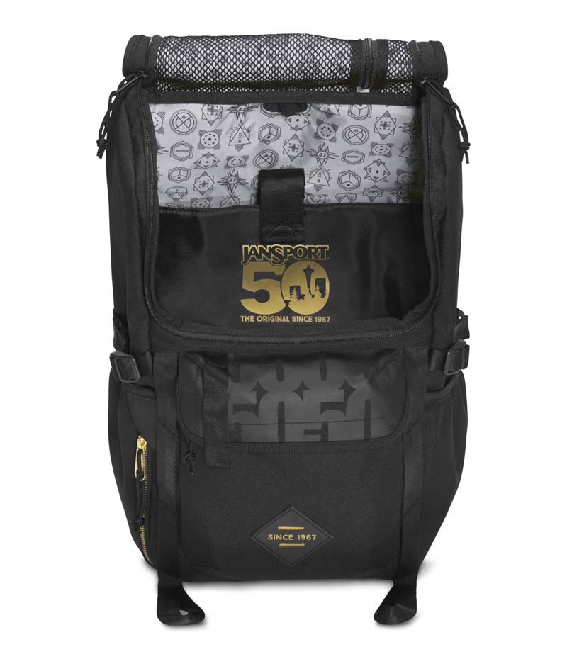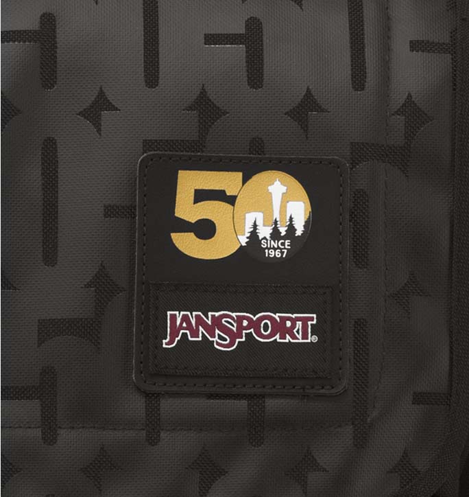 「JanSport」の50周年記念モデル(第二弾)として登場した「JanSport 50th ANNIVERSARY EDITION」(5月19日発売)。2モデル展開ですが、いずれも印象的なのはツヤが美しいブラックの生地。強靭なCORDURAナイロン地に「50」を象ったモノグラム調のプリントをポイント的に施しており、光の反射によって微妙な彩りが生まれました。