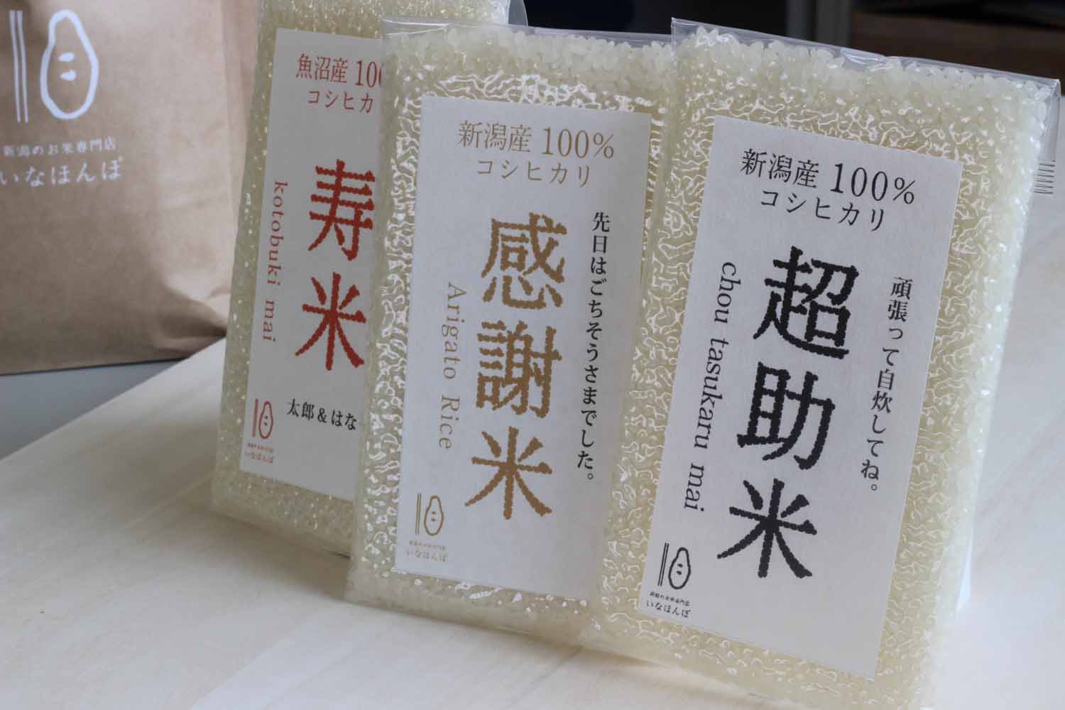 “キャンプ飯”では手軽に作れるメニューが重宝しますが、主食になる米はきちんと炊きたいという人にお勧めなのが、新潟のお米専門店「いなほんぽ」の、1合〜2合に小分けにした真空パック“贈り物米”。