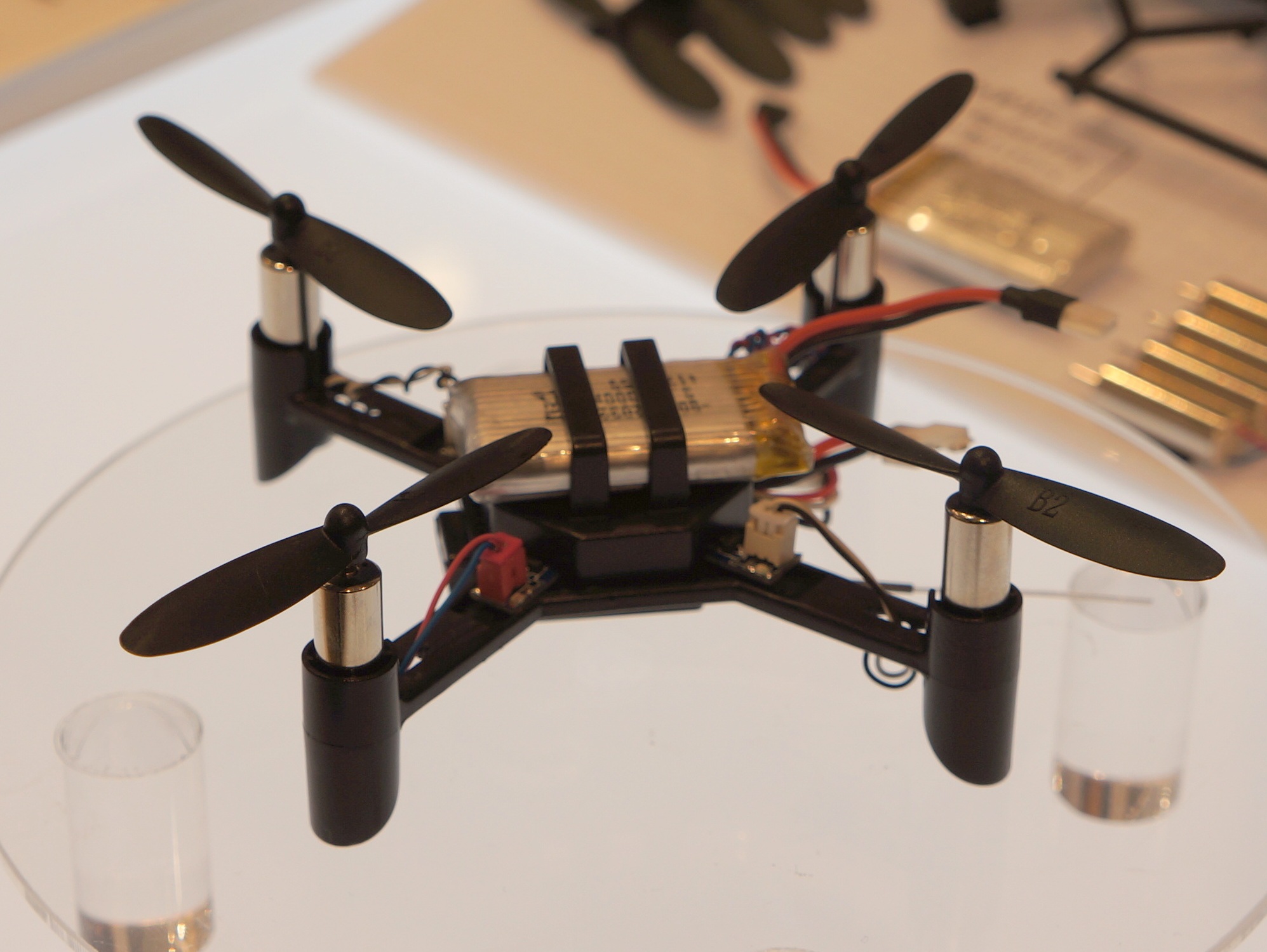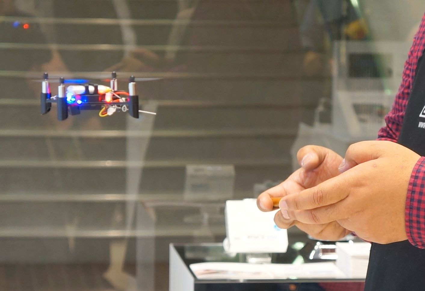 初日の15日には、+Styleが販売する組み立て式ドローンキット「Live Cam Drone (ライブカムドローン)」などが展示されました。プラモ感覚で組み立てられる本製品は、Wi-Fi経由でスマホやタブレットと連携したり、専用アプリをインストールしたスマホで操作したりできます。ドローンに内蔵された超小型カメラを使えば、LIVE映像や動画・静止画の撮影も可能。