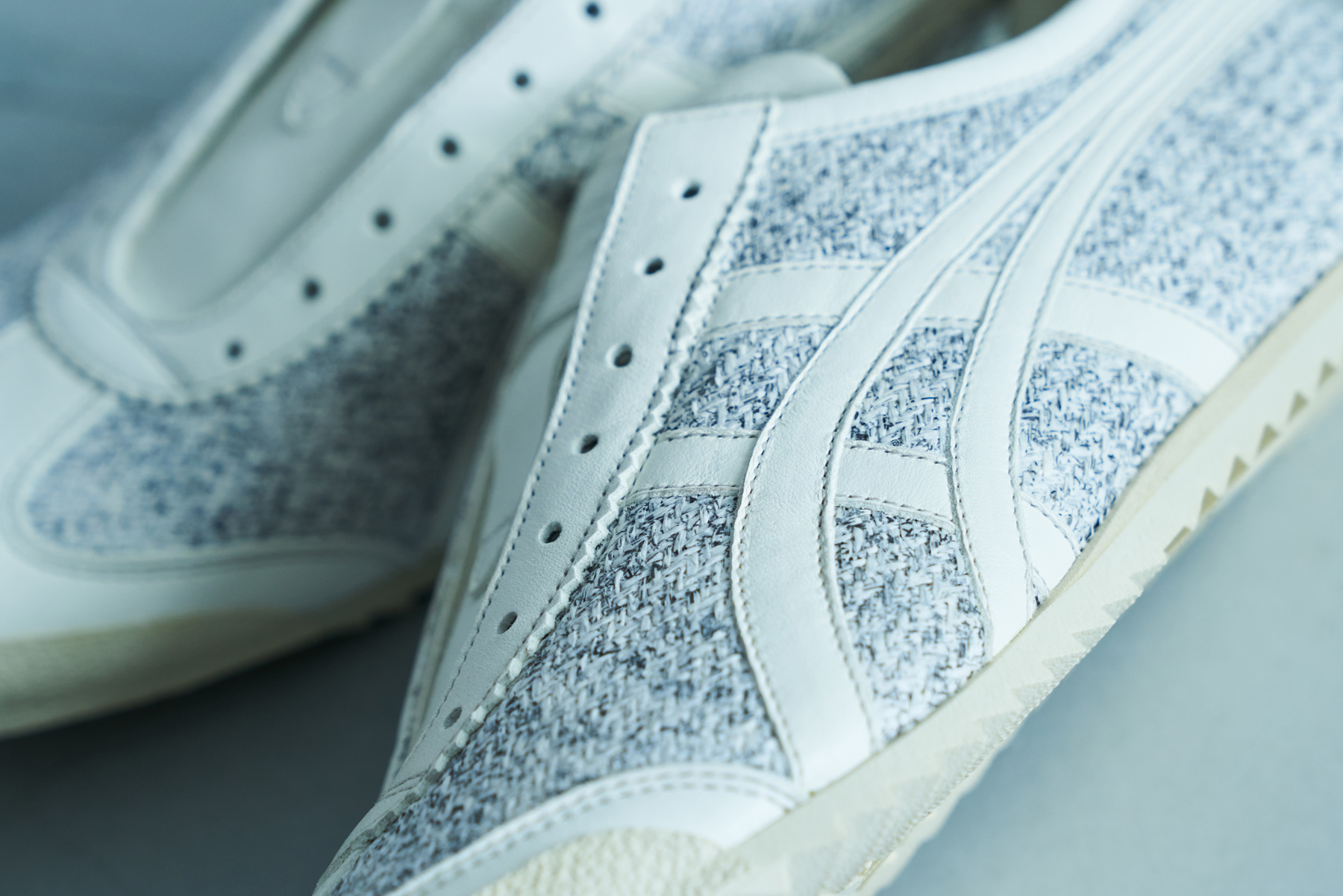また、サイドのグレー部分には、天然素材の紙糸繊維を使用。抄いた紙を細かく裁断し撚りをかけて糸にした抄織糸と呼ばれるもので、こちらも古くから日本で作られていた、地球環境にも人にも優しい素材です。メーカー希望小売価格は2万8080円。5月17日から伊勢丹新宿本店メンズ館、5月31日から国内の「オニツカタイガー」の一部直営店で販売です。