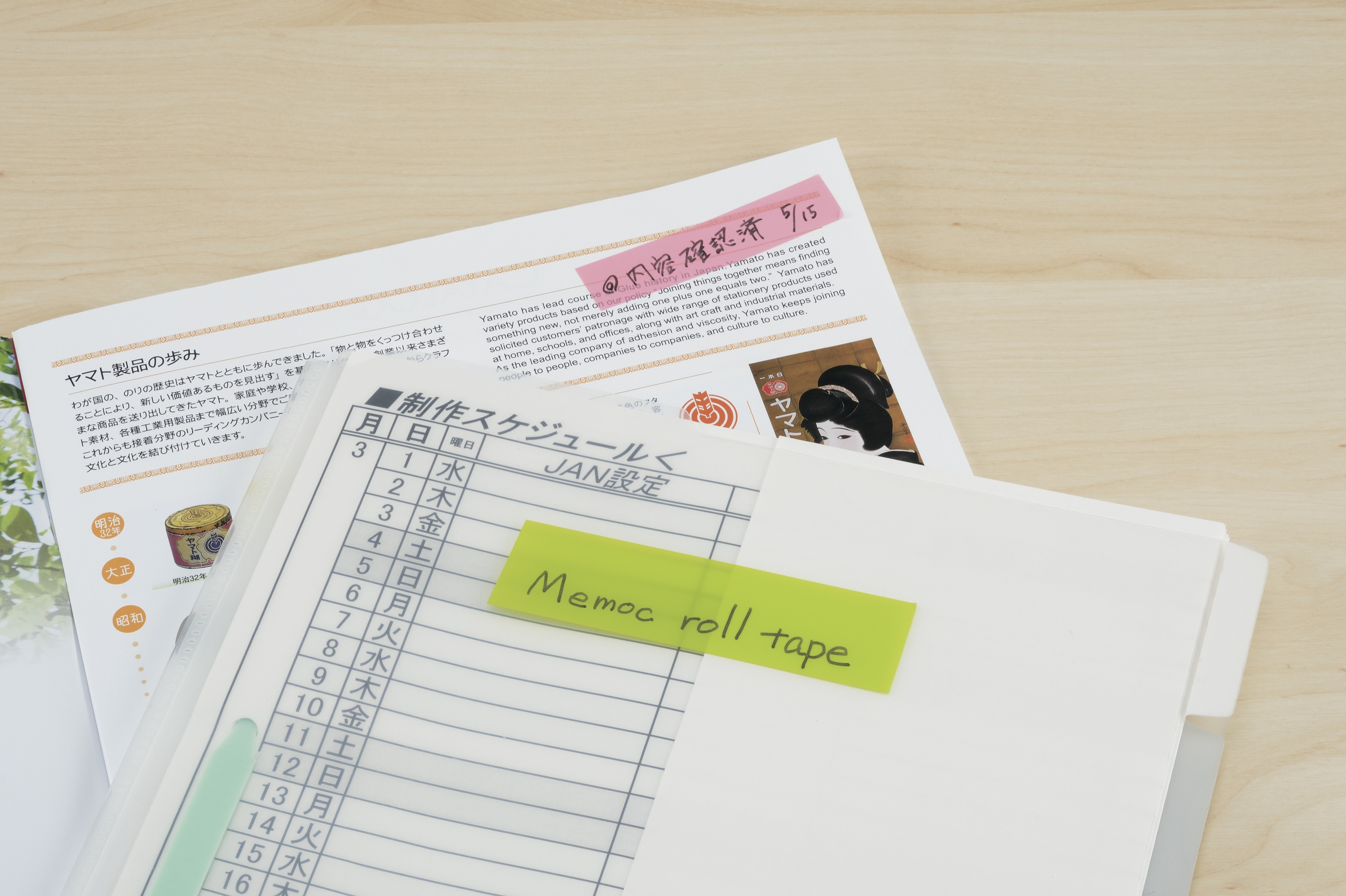 仕事で資料を配布するときに特にチェックして欲しいところがあるとき、勉強で重要ポイントをマークしたいとき、付箋が便利ですよね。でも、取れてしまったり、たくさんつけるとヒラヒラと邪魔になったりすることも。そこでオススメなのがロール状タイプのフィルムメモ。太いタイプは付箋として、細いタイプはマーカー代わりに、様々な用途で活躍してくれますよ。
