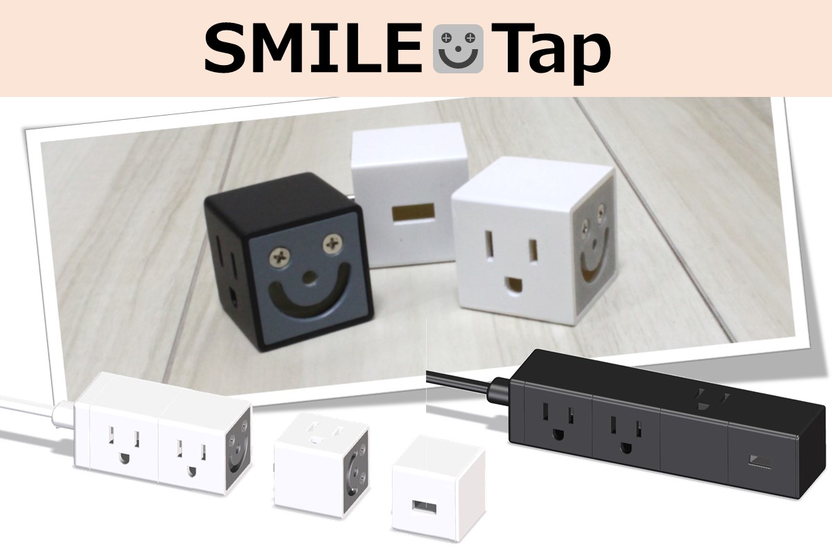 クラウドファンディングサイト「CAMPFIRE(キャンプファイヤー)」にてプロジェクト展開中の「SMILE Tap」。電源プラグを1つ挿せるキューブ状の“コンセント”で、数・順番・向きを自由に組み合わせることができます。連結させるときには180°まで回転できるので、ACアダプタを挿そうとしたら隣がジャマ! なんてことがなくなります。