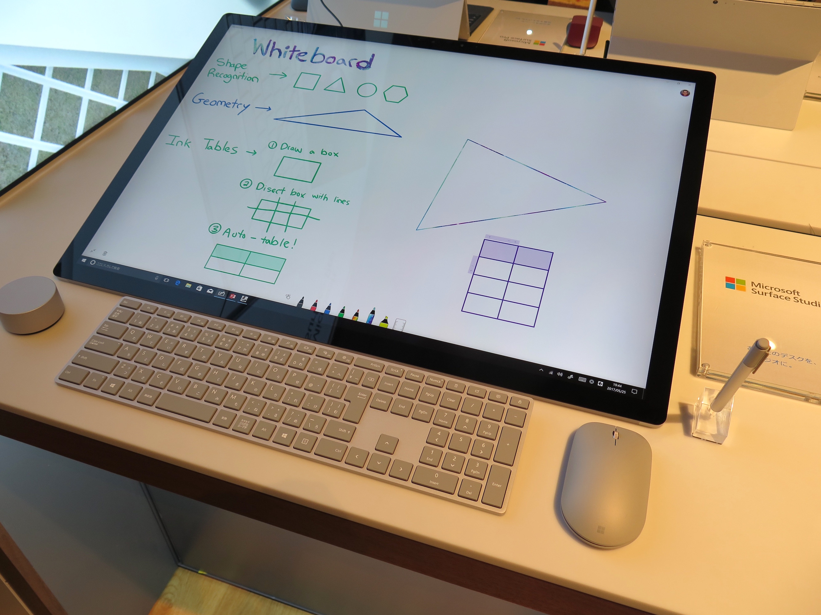 「Surface Studio」は、グローバル向けには昨年10月に発表されて、すでに海外のクリエーターたちに支持されている一体型PC。28インチの「4.5K PixelSense」ディスプレイを搭載し、しかも厚さはわずか12.5mm。「ゼログラビティヒンジ」という独自構造により、指一本で簡単にディスプレイの角度を調整でき、20度まで傾けられます。Surfaceペンあるいは指で、大きなキャンパスに絵を描くような感覚で作業ができ、角度を変えると、複数人で共有するホワイトボードのようにも使えます。