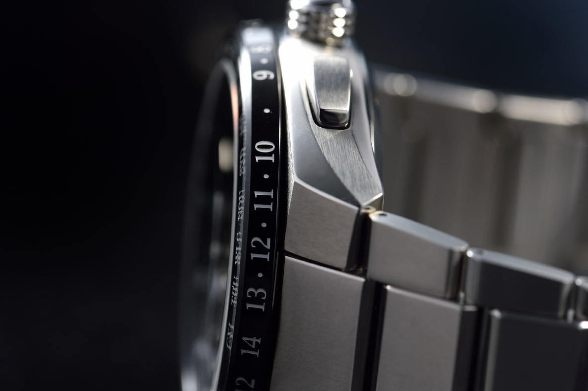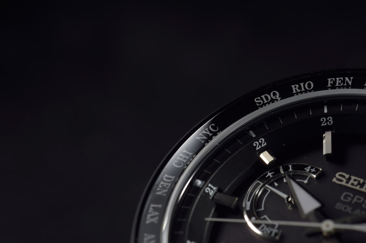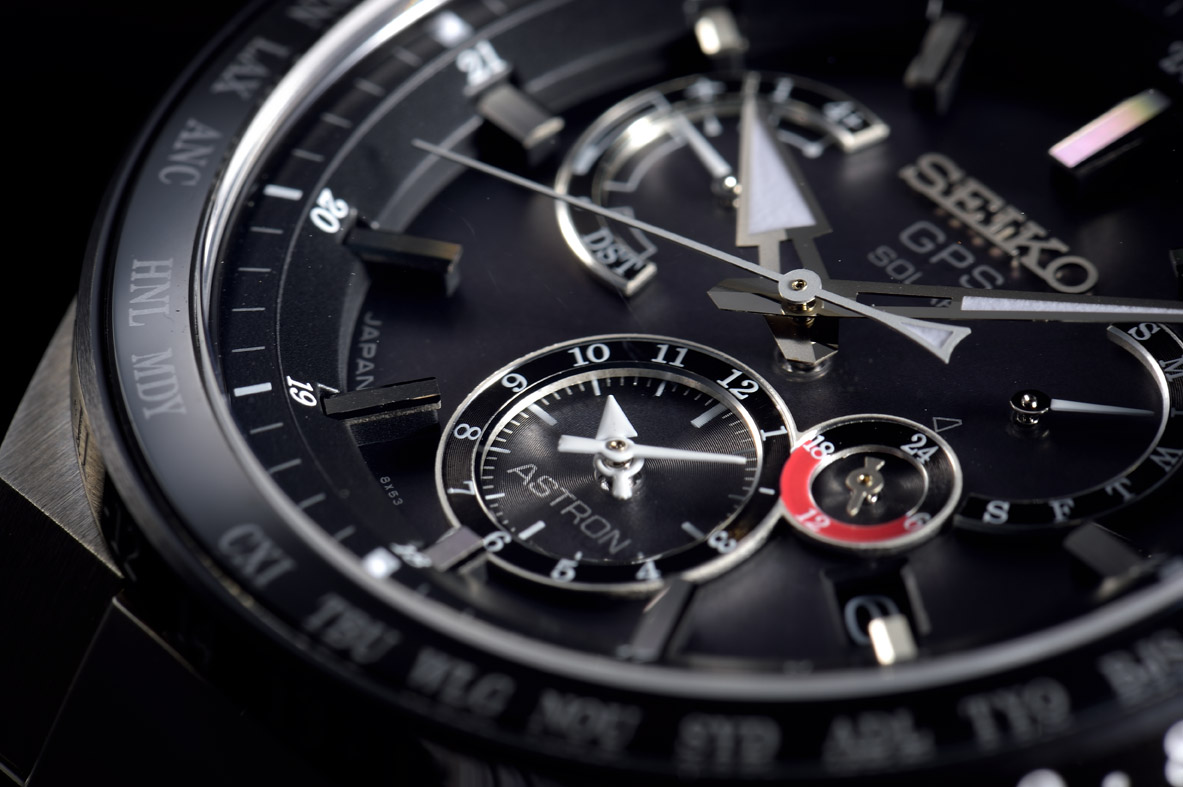 ▲ダイヤルは、セイコー アストロンお馴染みの立体的な意匠。すり鉢状の見返しと、切り立ったインデックスに加え、時分針を新形状にすることで、時刻はもちろん、インダイヤルの情報も判読しやすくしている